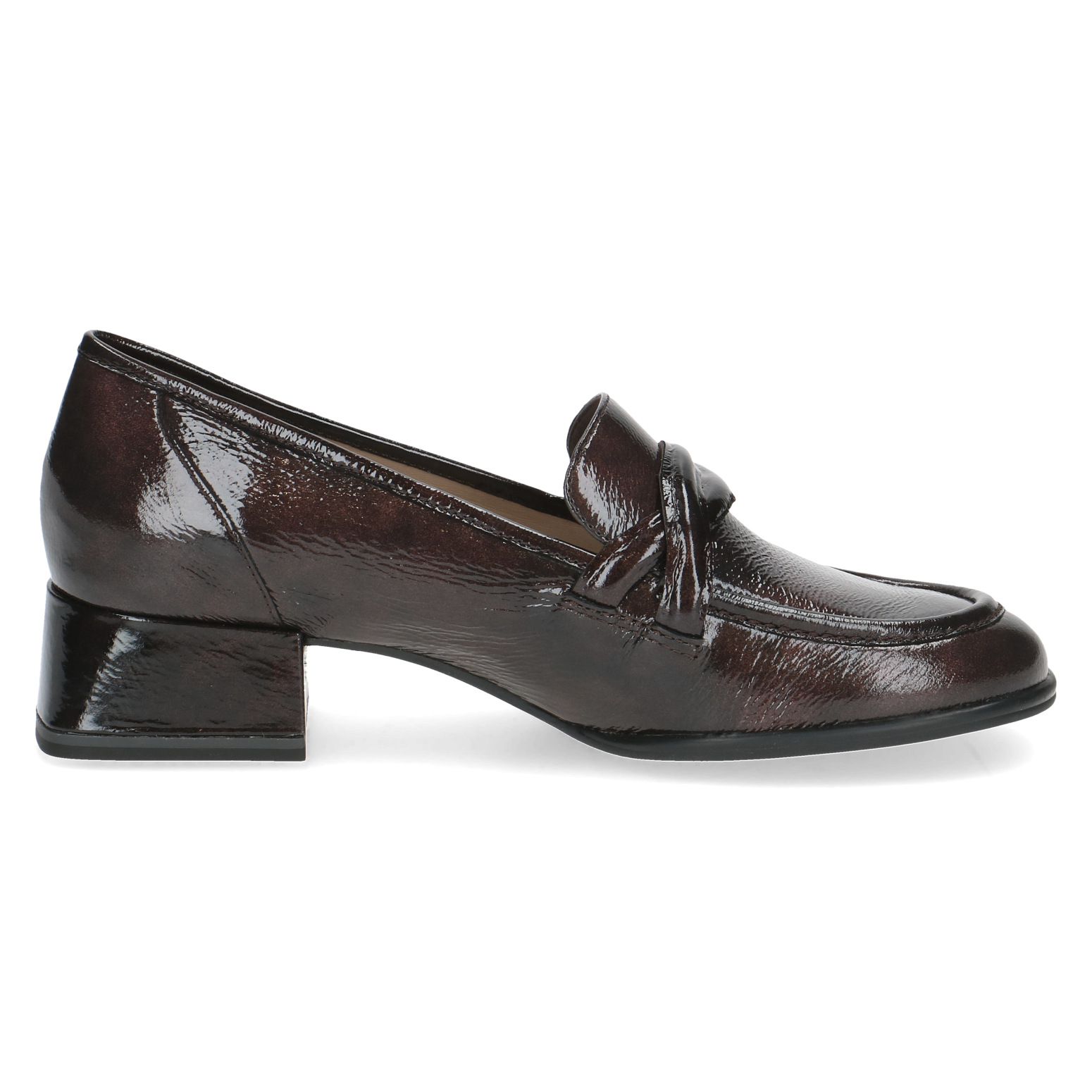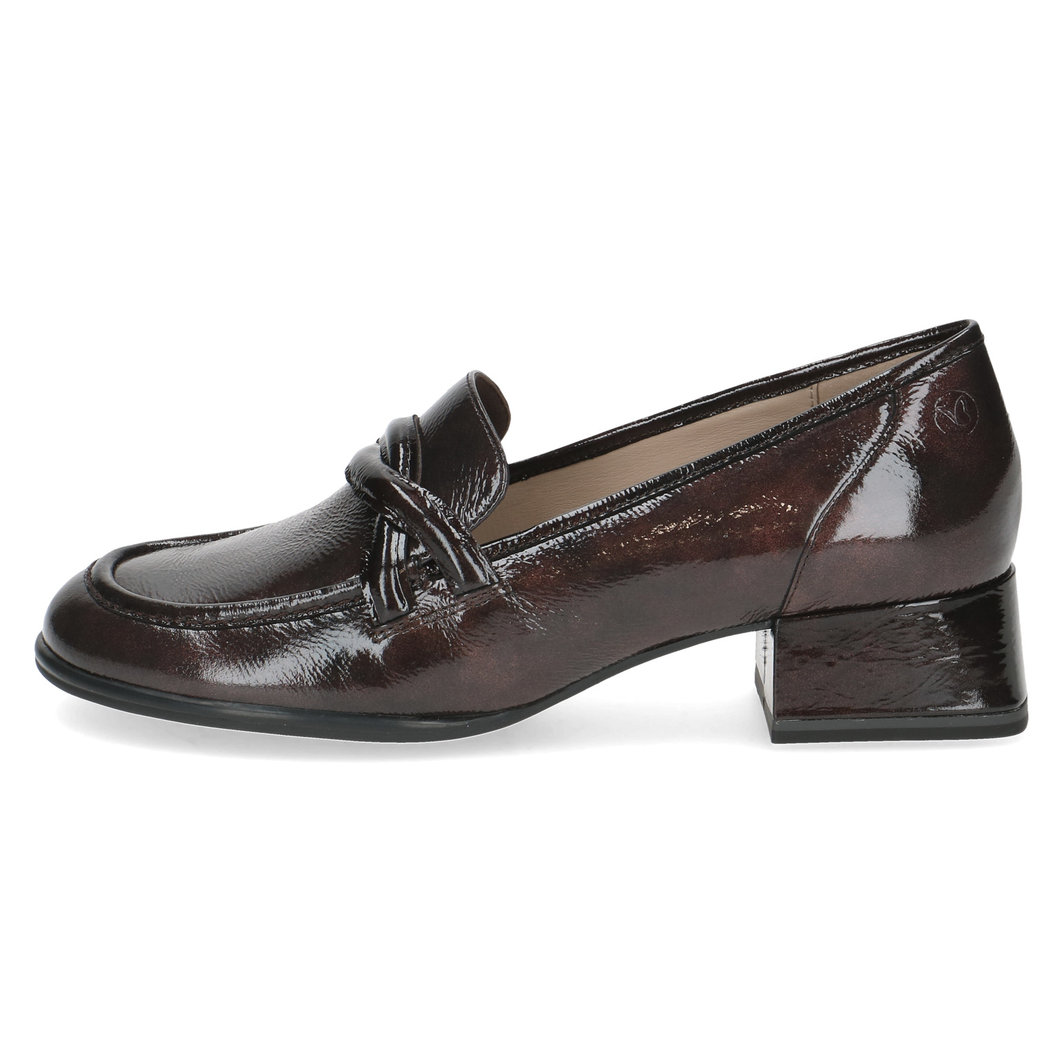 Дамски обувки от немската марка Caprice. Външната част е изработена от естествена кожа покрита с лак. Вътрешната част е комбинация от естествена кожа и изкуствена кожа. Височината на тока е 3.5см. Подметката е лека и с изключителни качества на еластичност.