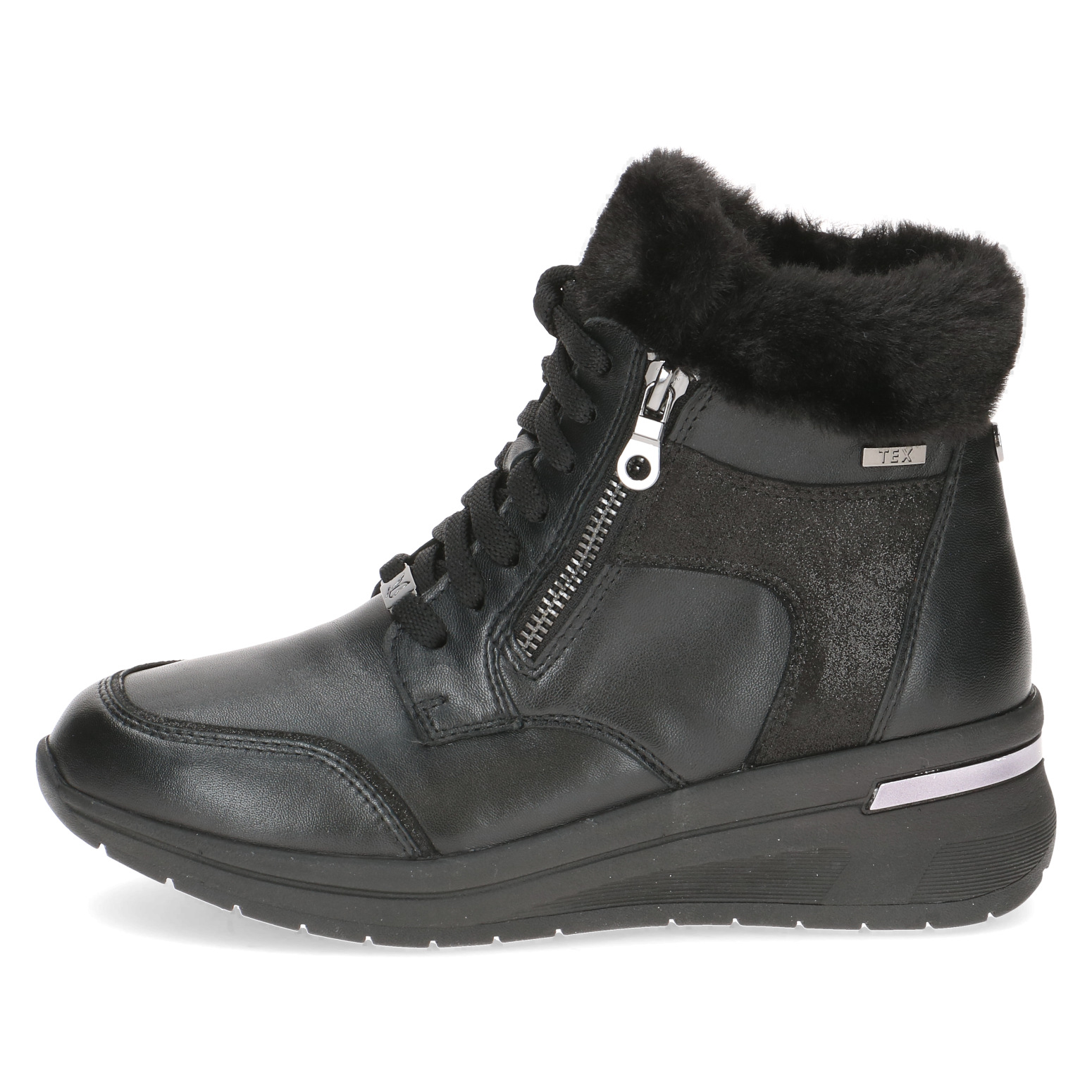 Дамски обувки от немската марка Caprice. Външната част е изработена от естествена кожа покрита с Tex мембрана. Вътрешната част е изработена от топъл хастар. Височината на тока е 4см. Подметката е лека и с изключителни качества на еластичност.