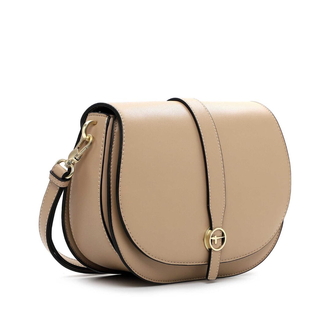 Дамска чанта Tamaris в елегантен бежов нюанс, изработена от гладка еко кожа с фин сатенен ефект. Дизайнът е класически и изчистен, с красиво златисто закопчаване отпред, което придава луксозен акцент. Перфектен избор за ежедневни и по-официални визии.