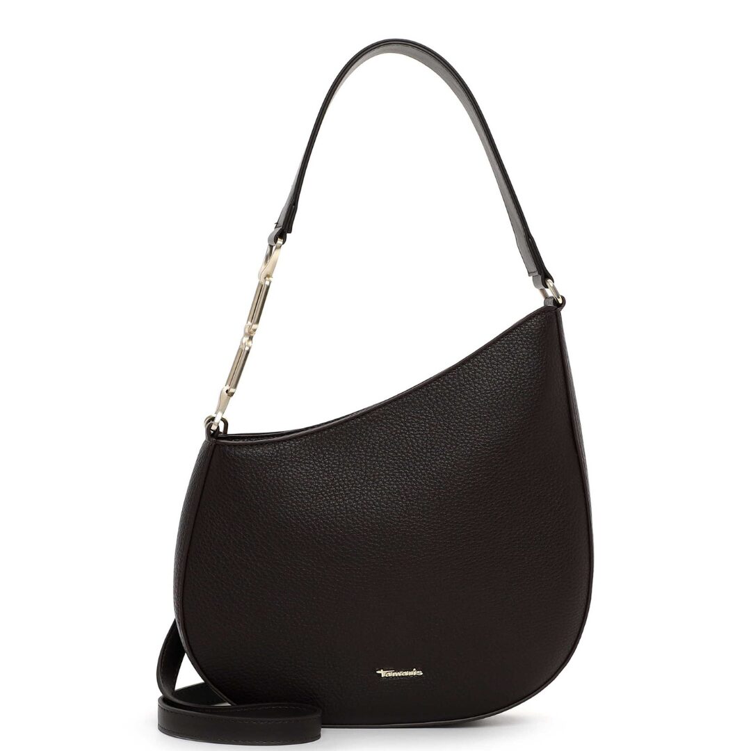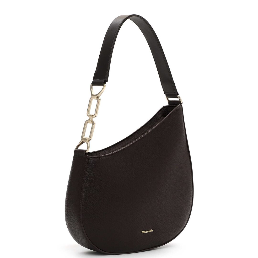 Елегантна дамска чанта Tamaris в тъмнокафяв цвят, изработена от висококачествена еко кожа с фина зърнеста структура. Моделът впечатлява с изчистен силует и стилна дръжка, украсена със златисти метални елементи. Подходяща както за ежедневието, така и за по-официални визии, тя добавя изтънченост и модерен акцент към всяко облекло.