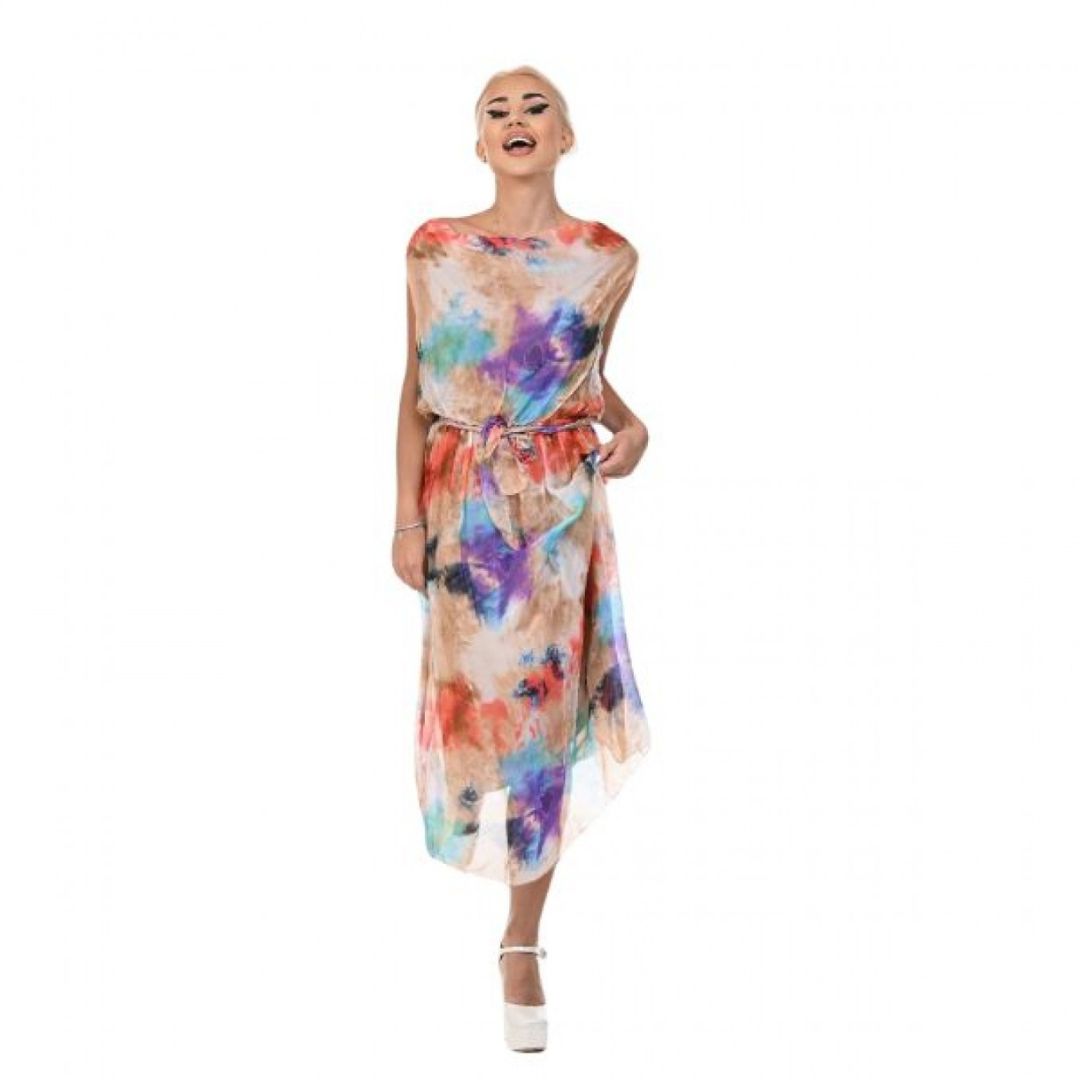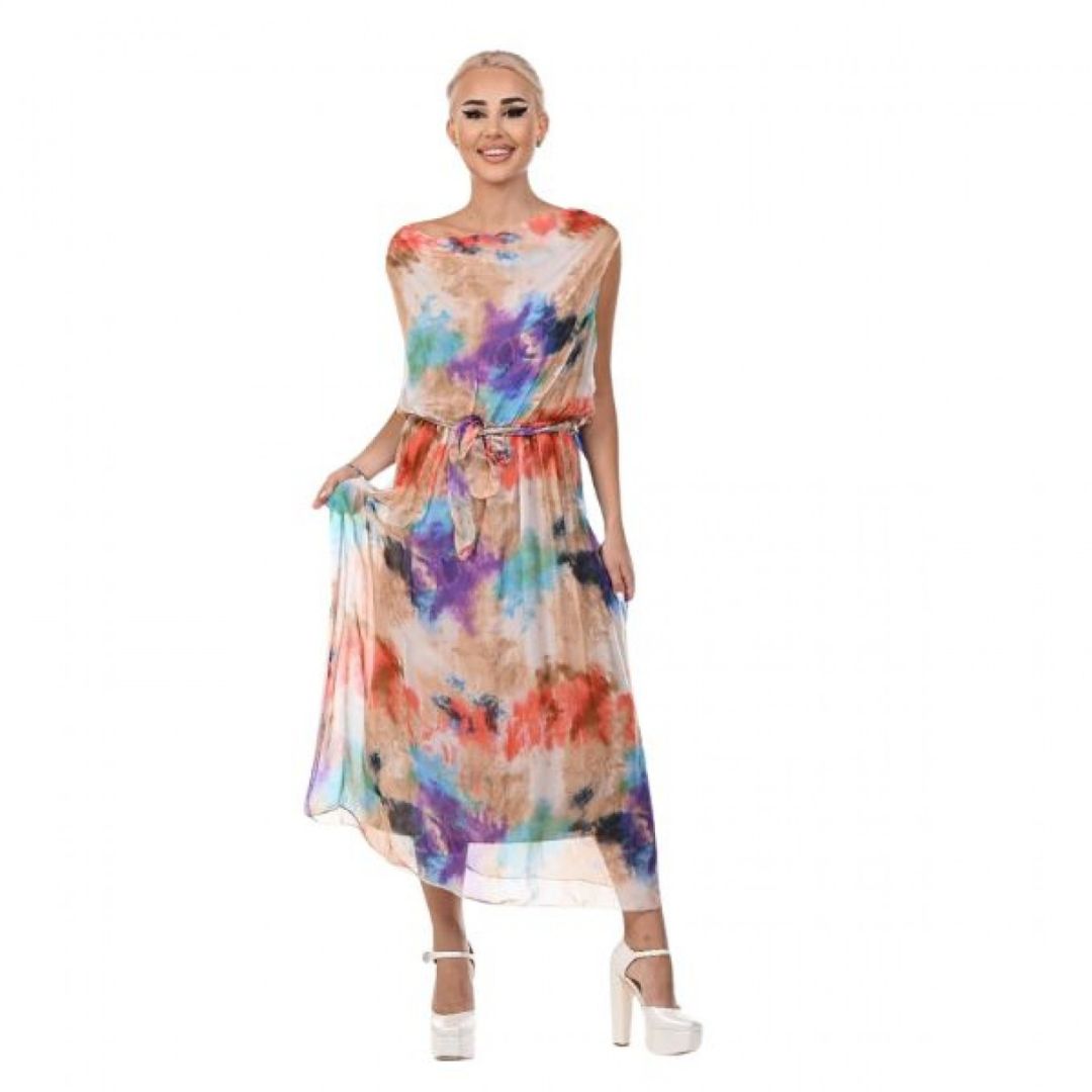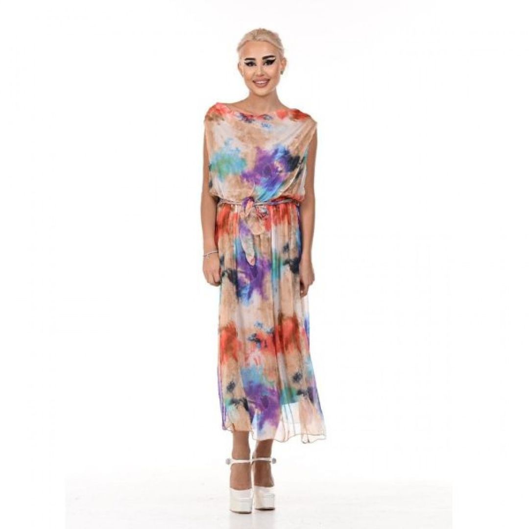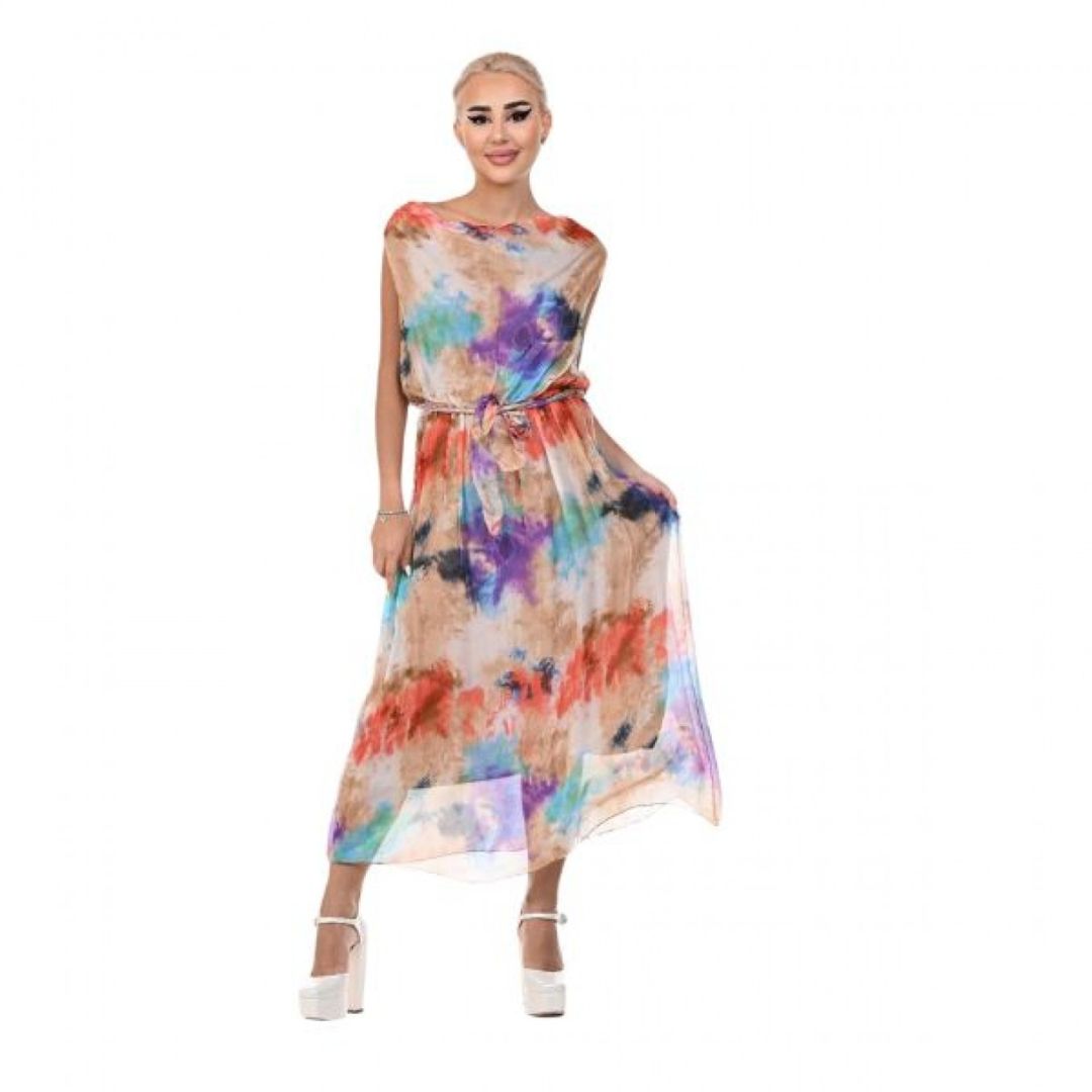 Тази дълга дамска рокля от Yoncy е истинско въплъщение на елегантност и нежност. Със своята ефирна кройка , тя подчертава естествената красота и изтънченост на жената. Цветният принт, съчетан с пастелни тонове, придава на роклята изключително свеж и романтичен вид, подходящ както за дневни разходки, така и за вечерни събития. Нежните и плавни линии на модела добавят лекота и грация на всяка стъпка, превръщайки го в идеалния избор за стилна и уверена визия.