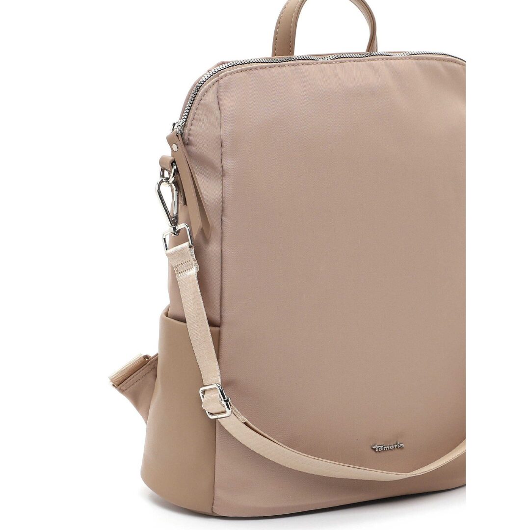 Модерна и практична дамска раница Tamaris в нежен бежов цвят. Изработена от висококачествени материали, тя впечатлява с лекота, удобство и стилен минималистичен дизайн. Моделът може да се носи и като чанта благодарение на регулируемата презрамка, а просторното вътрешно отделение я прави идеален избор за ежедневието.