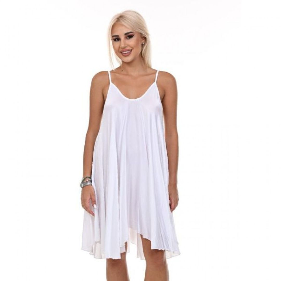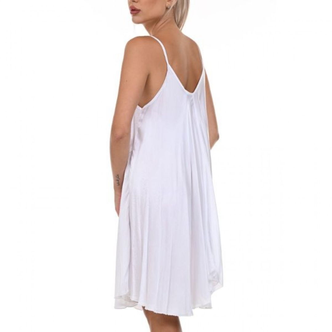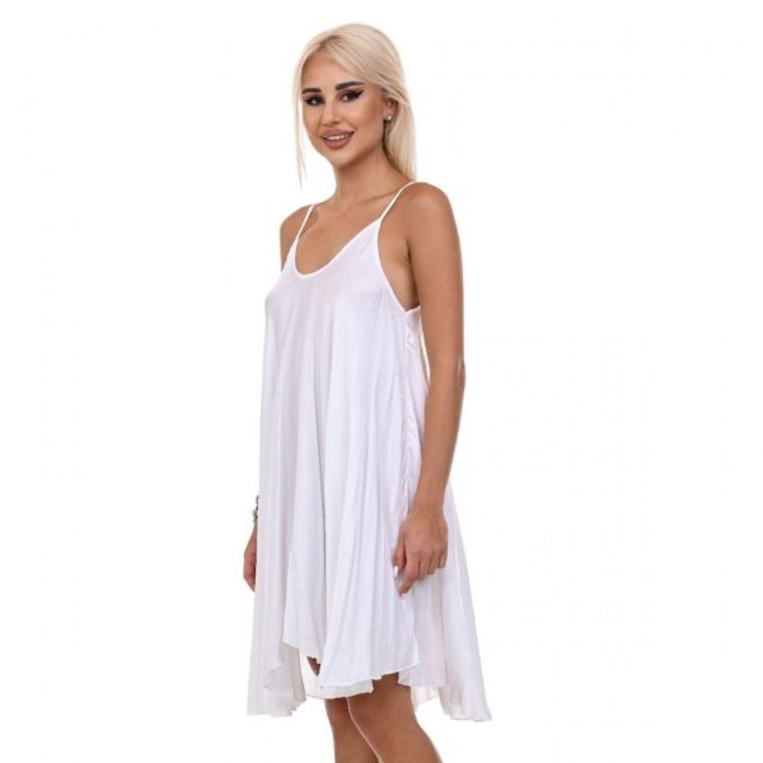 Роклята Yoncy е перфектният избор за всяка дама, която иска да излъчва свежест и изисканост през летните дни. Изработена от сатенирана материя, тази рокля предлага не само нежно усещане върху кожата, но и фин блясък, който привлича погледите. Свободната кройка осигурява комфорт и свобода на движение, докато фините презрамки и заобленото деколте деликатно подчертават женствените линии. С дължина до коляното, Yoncy е идеалното съчетание на непринуденост и елегантност – добавете я към гардероба си за безупречен летен стил.