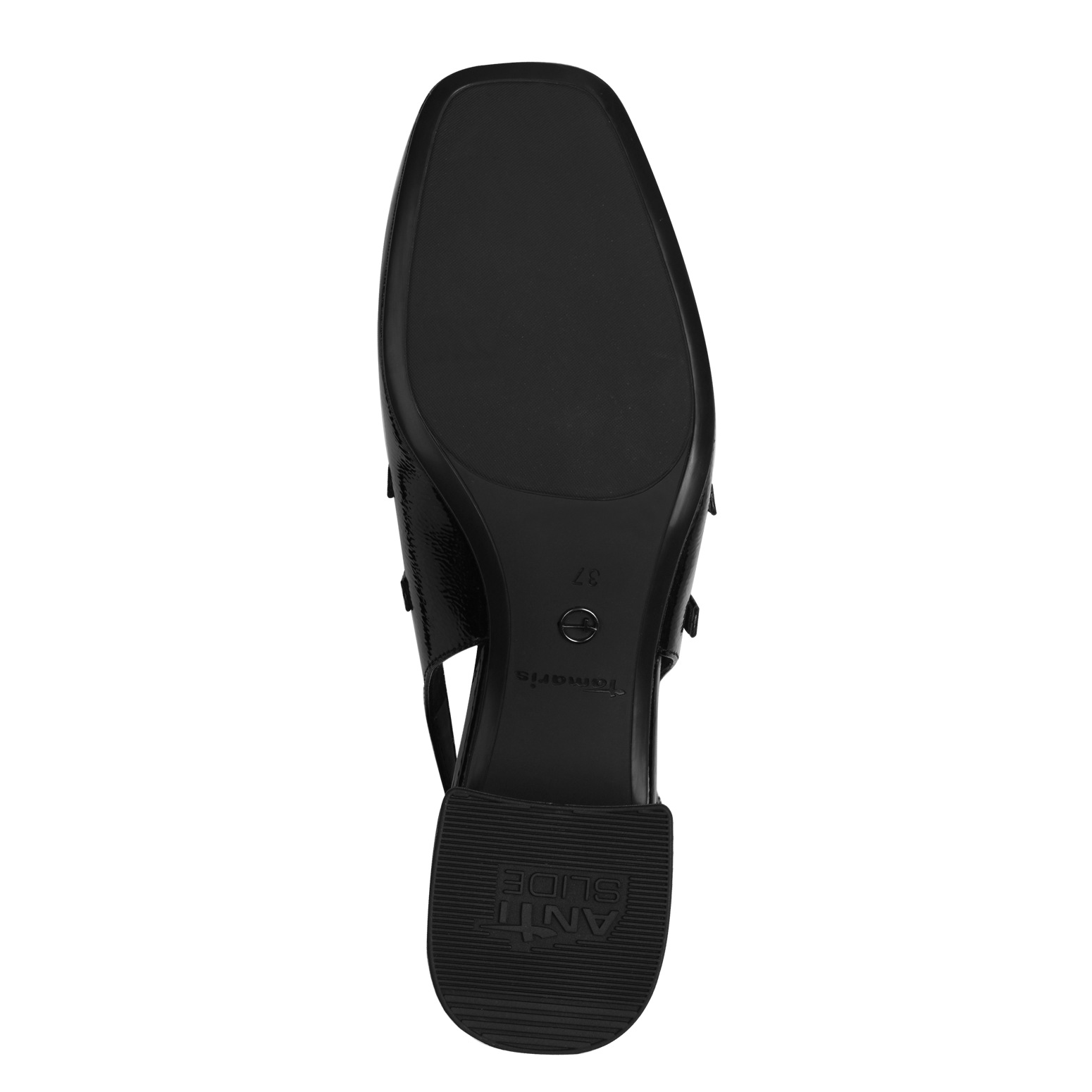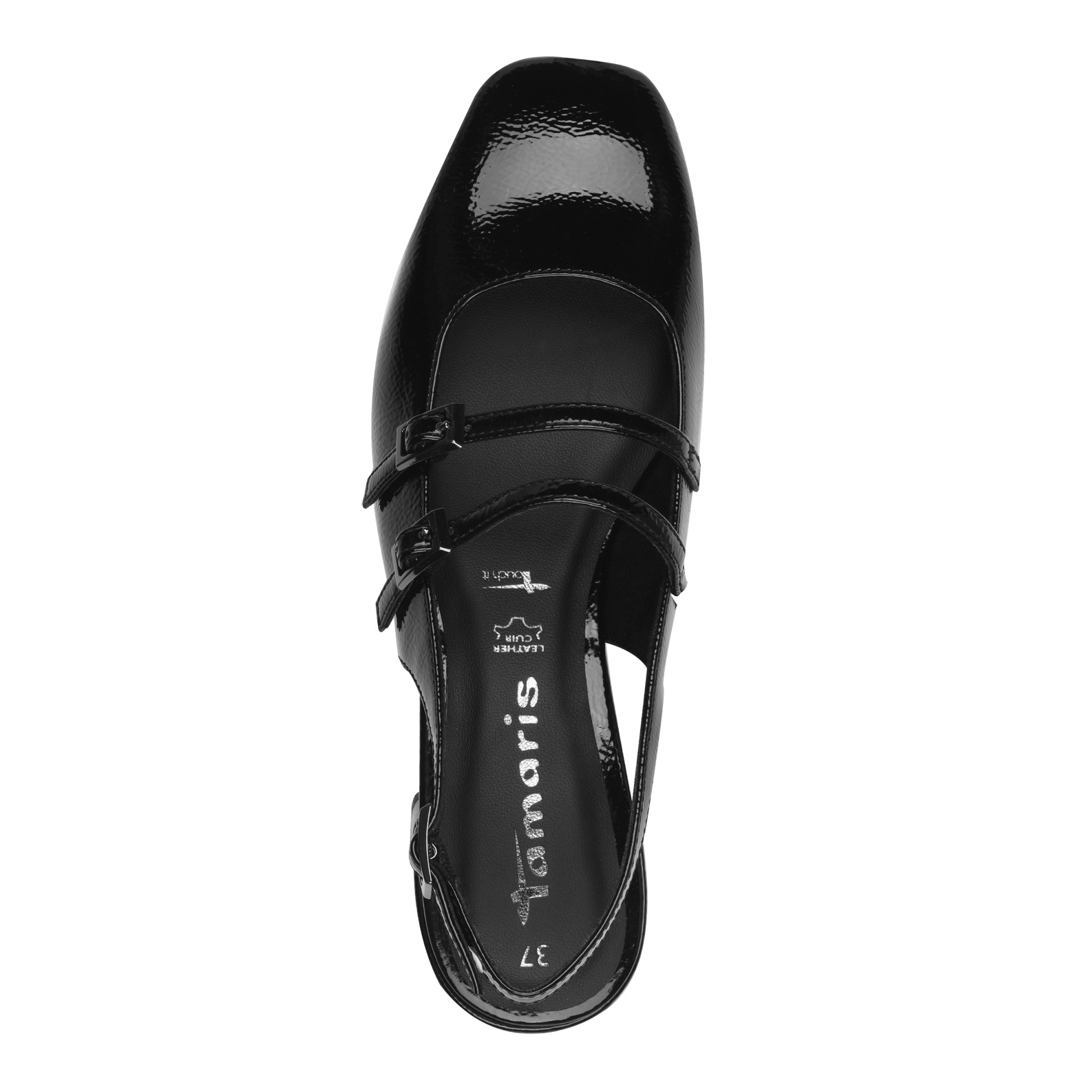 Дамски обувки от немската марка Tamaris. Външната част е изработена от висококачествена еко-кожа. Вътрешната част е изработена от комбинация на естествена и еко-кожа. Височината на ходилото в задната част е 4 см. Практичното затваряне ви позволява да го регулирате индивидуално, докато G-ширината осигурява достатъчно пространство.
