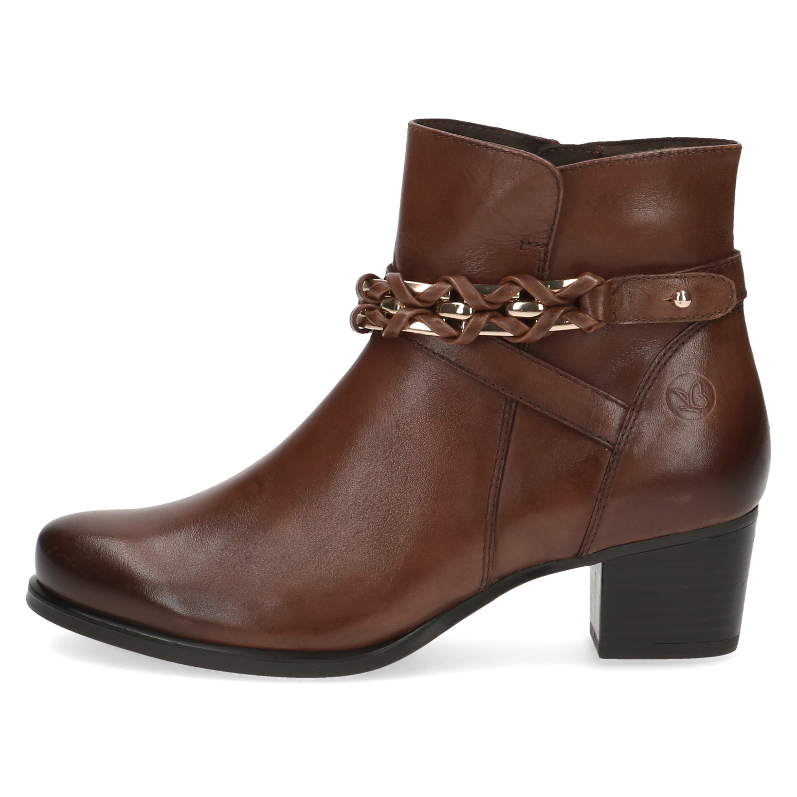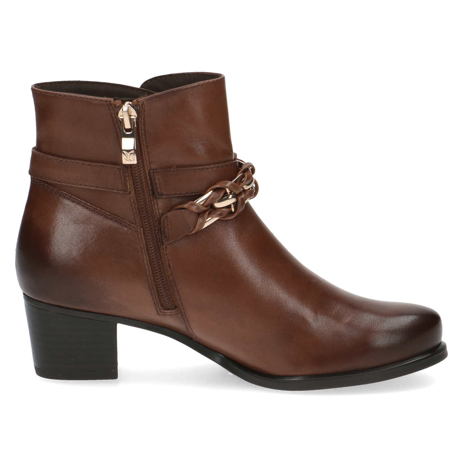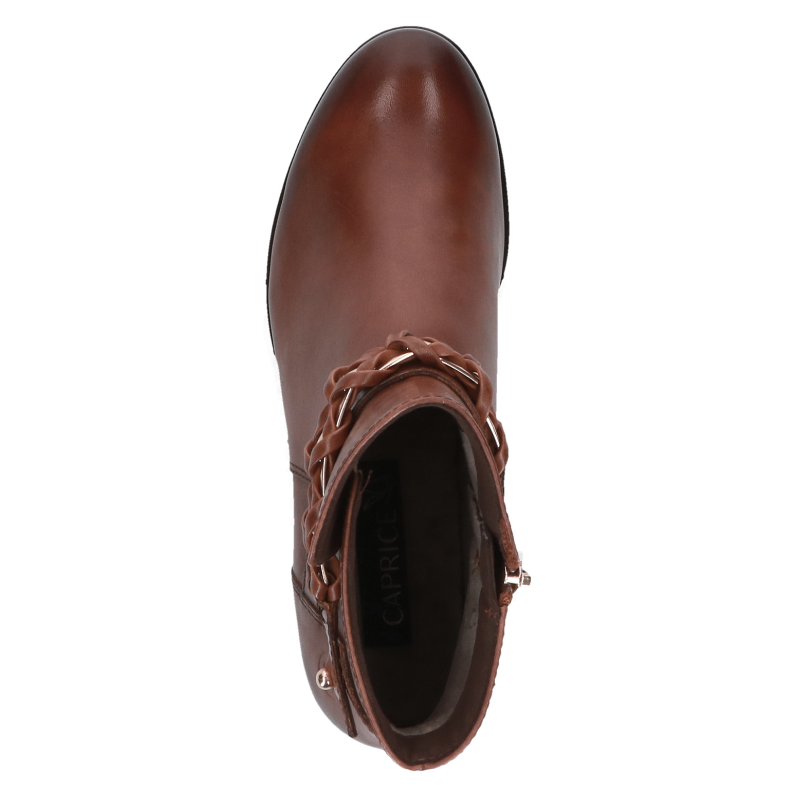 Дамски боти от световноизвестната марка Caprice. Външната част комбинация от естествена и изкуствена кожа. Хастара се състои от изкуствена кожа и антибактериален текстил. Височината на ходилото в задната част е 5 см. Мека, анатомична стелка,  се грижи за оптималния Ви комфорт. Обуват се лесно с помощта на цип от  вътрешната страна.