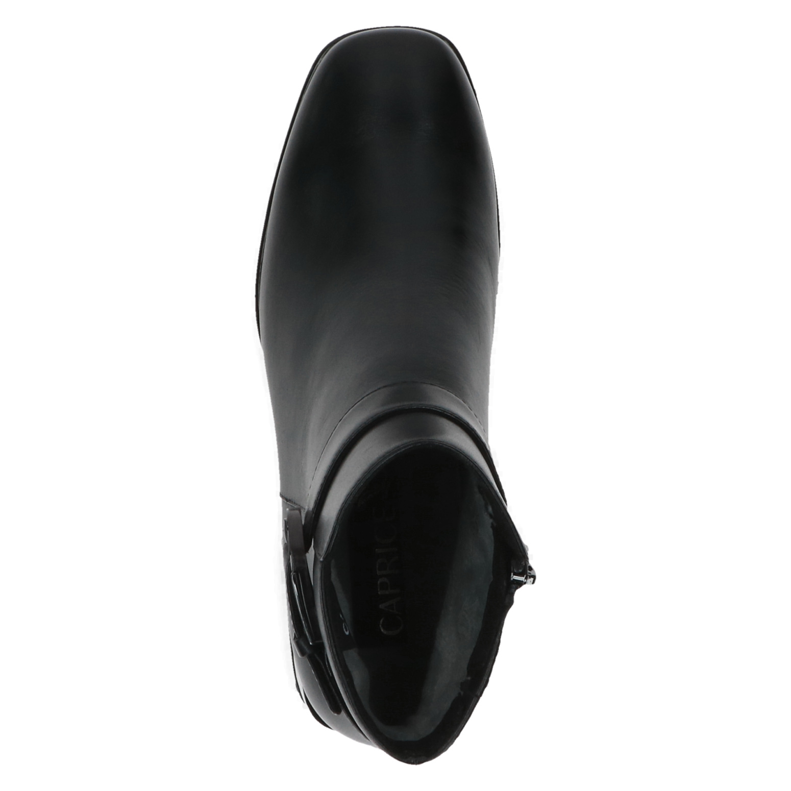 Дамски боти от световноизвестната марка Caprice. Външната част е изработена от естествена кожа. Вътрешната част се състои от антибактериални текстилни материали и еко-кожа. Височината на ходилото в задната част е 4.5см. Мека, анатомична стелка, се грижи за оптималния Ви комфорт. Моделът се пристяга лесно с цип.