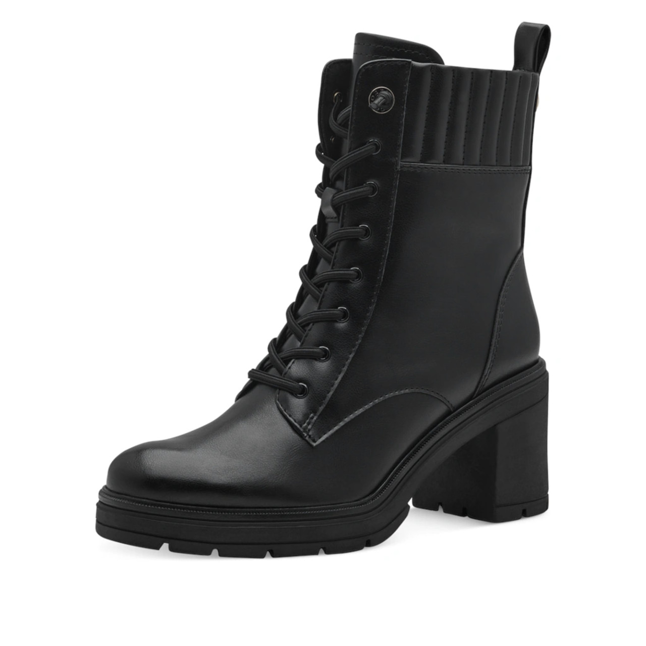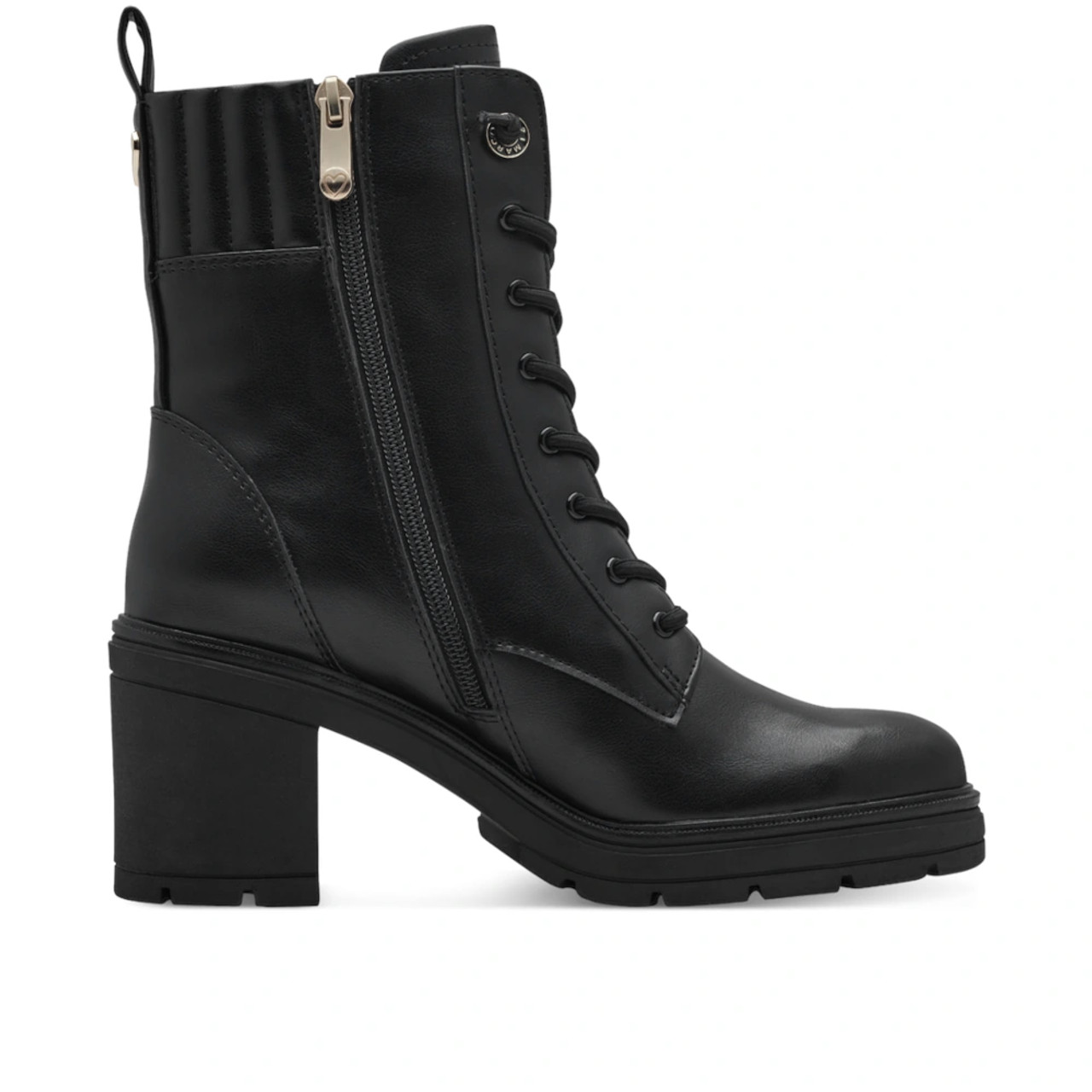 Дамски боти от световноизвестната марка Marco Tozzi. Външната част е изработена от висококачествена еко кожа, хастарът се състои от антибактериален текстил. Мека анатомична стелка се грижи за оптималния Ви комфорт. Обуват се лесно с помощта на цип от вътрешната страна, а връзките позволяват регулиране на ширината. Височината на тока е 8см.За оптималния Ви комфорт се грижи Feel Me технологията.