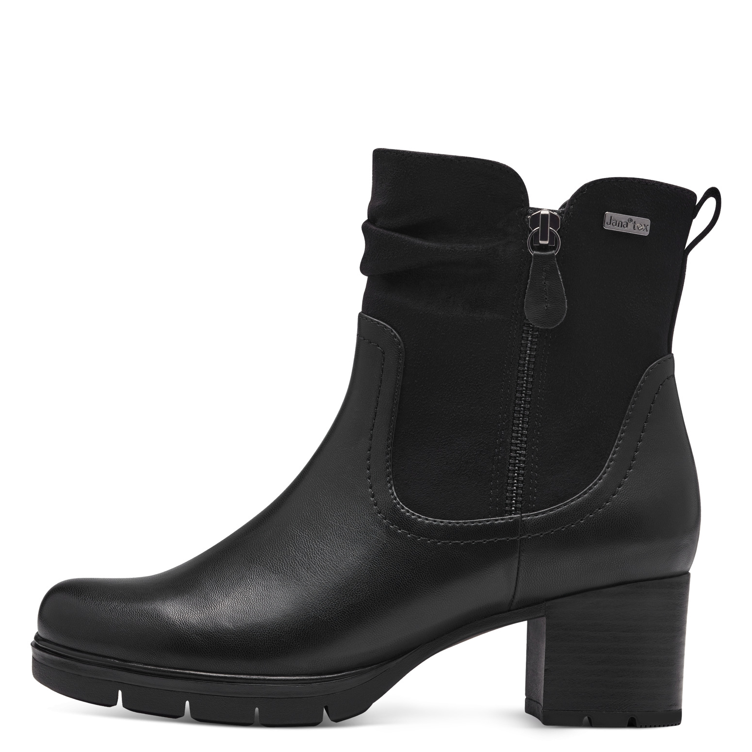 Дамски боти от немската марка Jana. Външната част е изработена от еко-кожа покрита с Теx мембрана. Хастара се състои от текстилни материали. Подметката е с височина от 5.5 см в задната част.  За лесното им обуване се грижи ципа. Ходилото е с отлична анатомична форма за оптимален комфорт.
