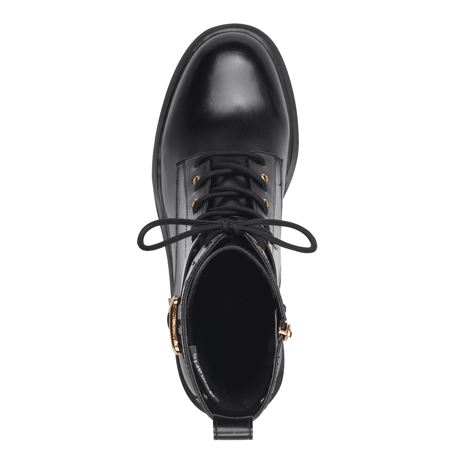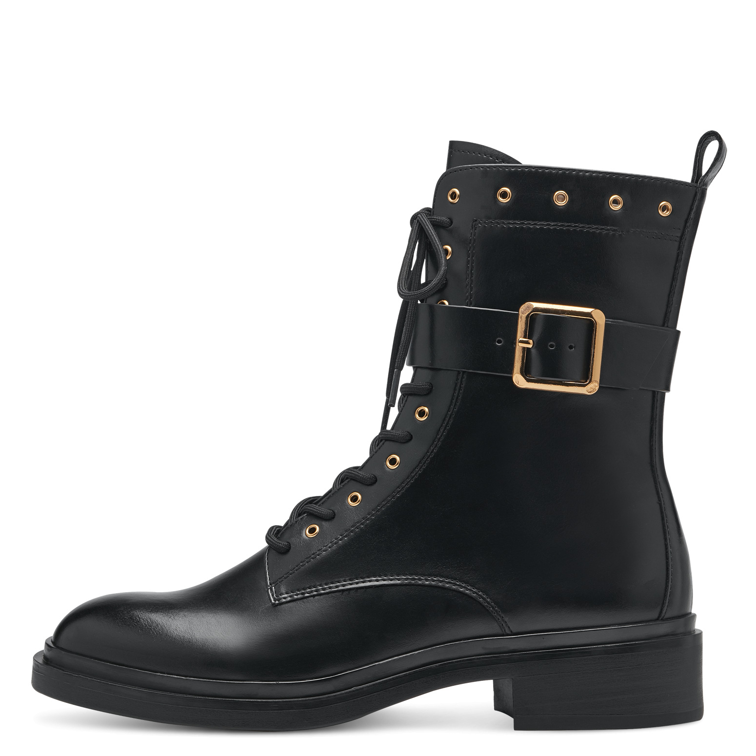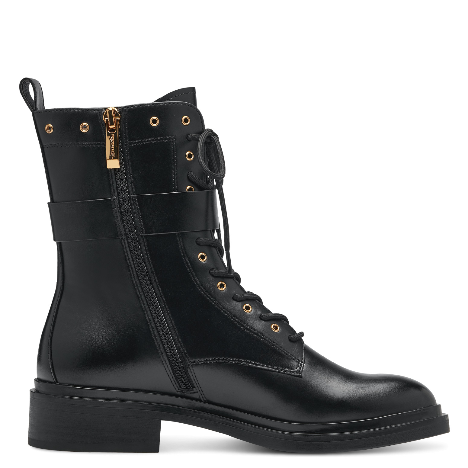 Дамски боти от немската марката Tamaris. Външната част е комбинация от естествена и изкуствена кожа. Хастара се състои от текстилни материали и изкуствена кожа. Моделът се пристяга лесно с връзки и цип. Височината на тока е 3.5 см.
