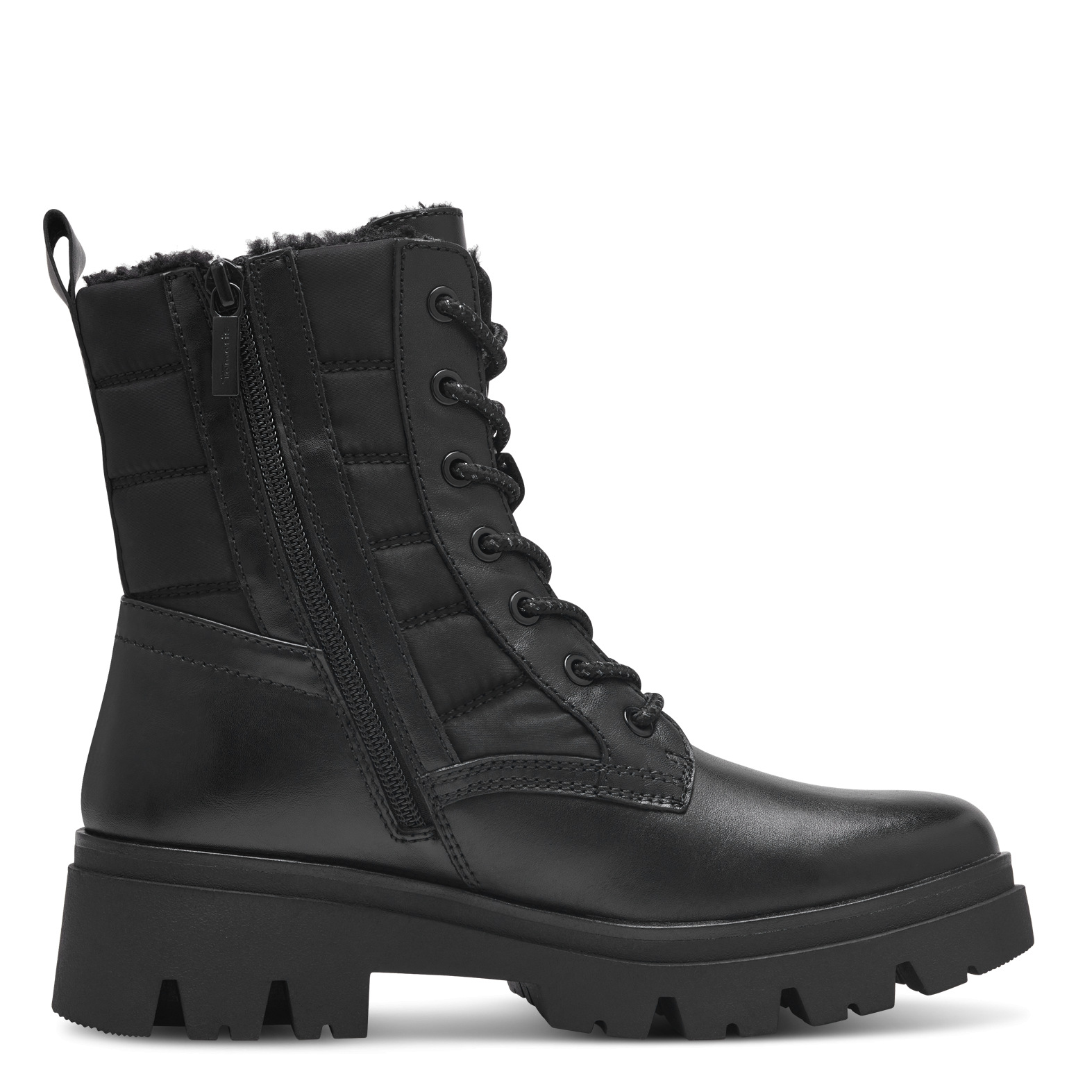 Дамски боти от немската марка Tamaris. Външната част е комбинация от естествена кожа и изкуствена кожа покрита с Tex мембрана. Хастара се състои от текстилни материали. Подметката е с височина от  4.5 см в задната част.  За лесното им обуване се грижат връзките и ципа. Ходилото е с отлична анатомична форма за оптимален комфорт.