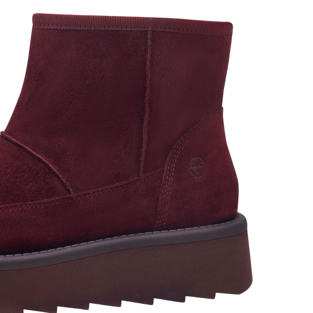 Външната част е изработена от естествена кожа(велур). Вътрешната част се състои от топли текстилни материали. Технологията за изработка на стелката ви гарантира оптимален комфорт на ходилото. Височината на подметката е 4 см.