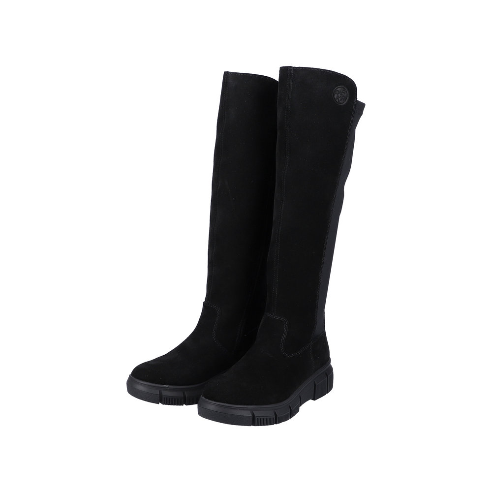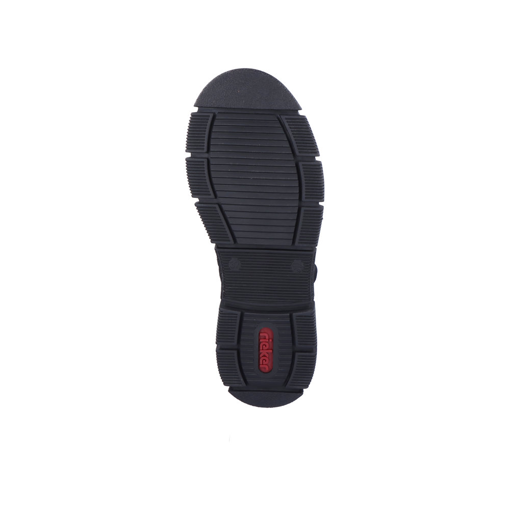 Дамски ботуши от немската марка Rieker. Външната част е направена от висококачествена, естестествена кожа в комбинация от синтетични материали. Хастара се състои от топли, текстилни материали. Височината на пометката е 4 см. Подметката е гъвкава и удобна. Мека, анатомична стелка се грижи за оптималния комфорт. Моделът е реализиран в ширина Е 1/2, подходящ за по-тесни ходила.