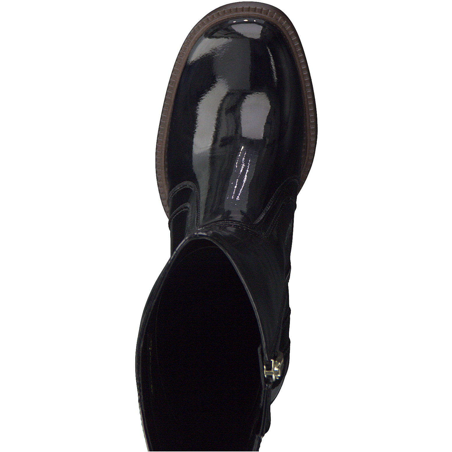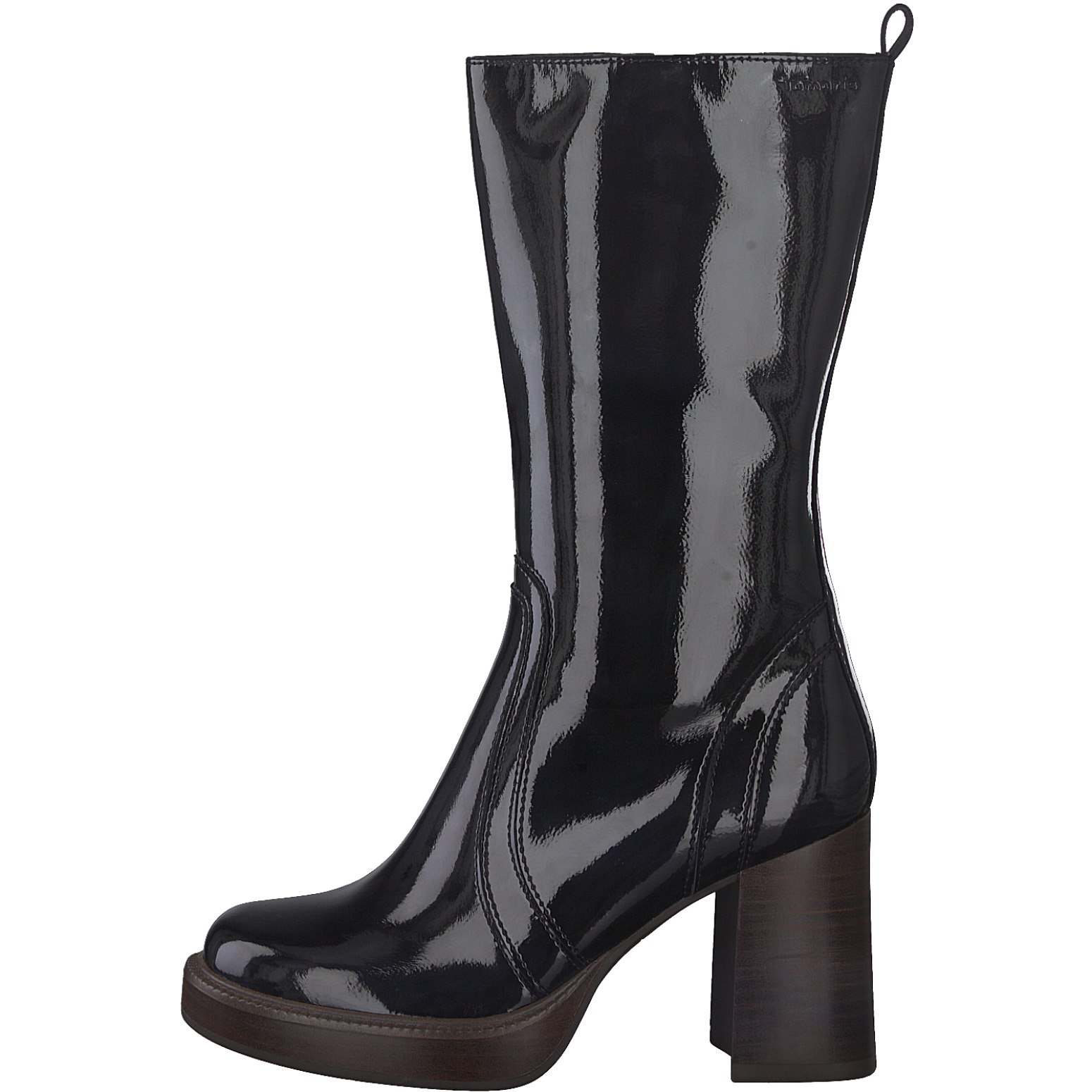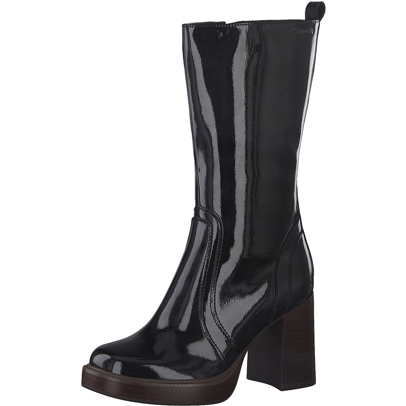 Дамски ботуши от немската марка Tamaris. Външната част на модела е изработена от изкуствена кожа покрита с лак. Вътрешната част е комбинация от изкуствена кожа и антибактериални текстилни материали. Височината на ходилото в задната част е 9 см. Моделът се пристяга лесно с цип. Изключително издръжлив модел, който предпазва крака ви от студ.