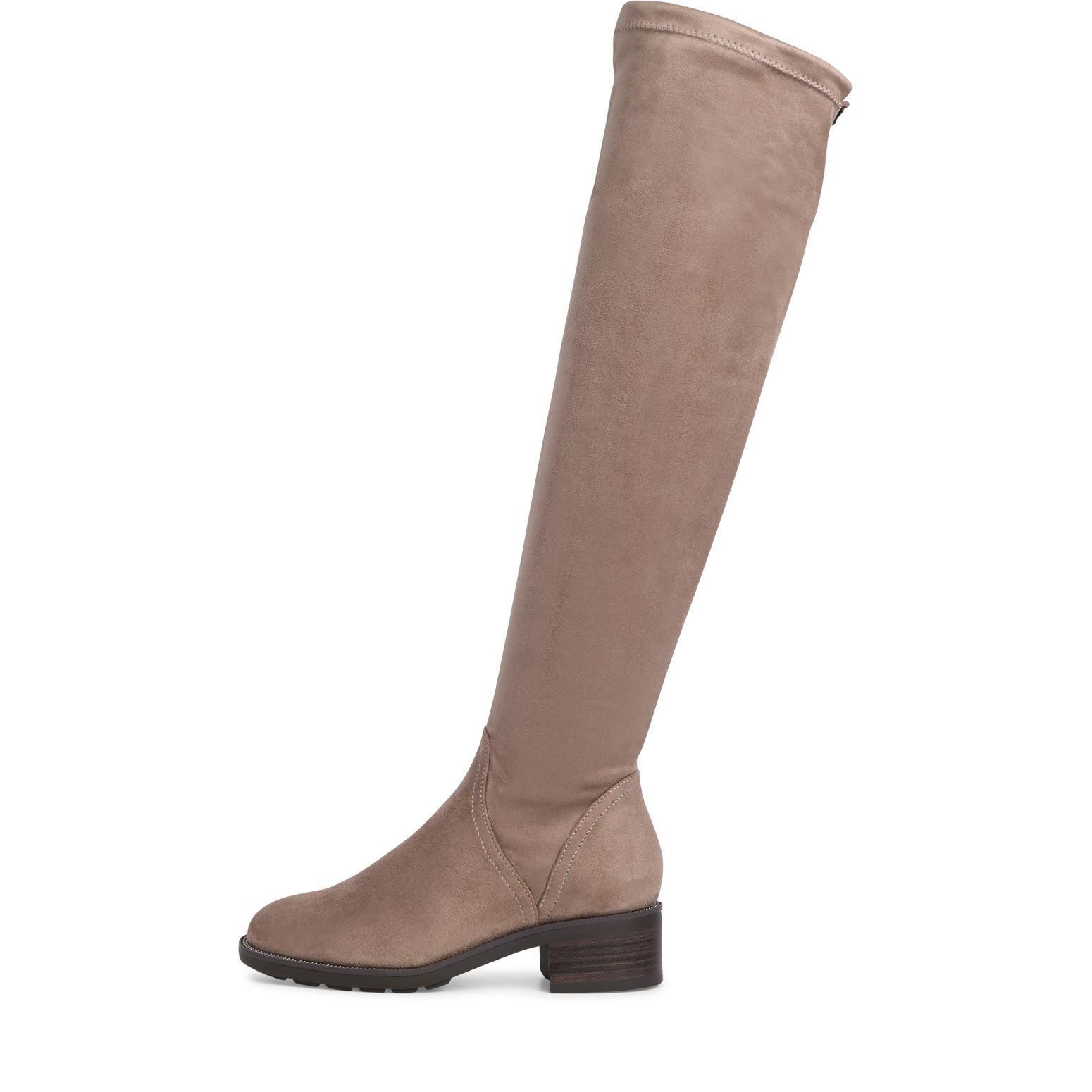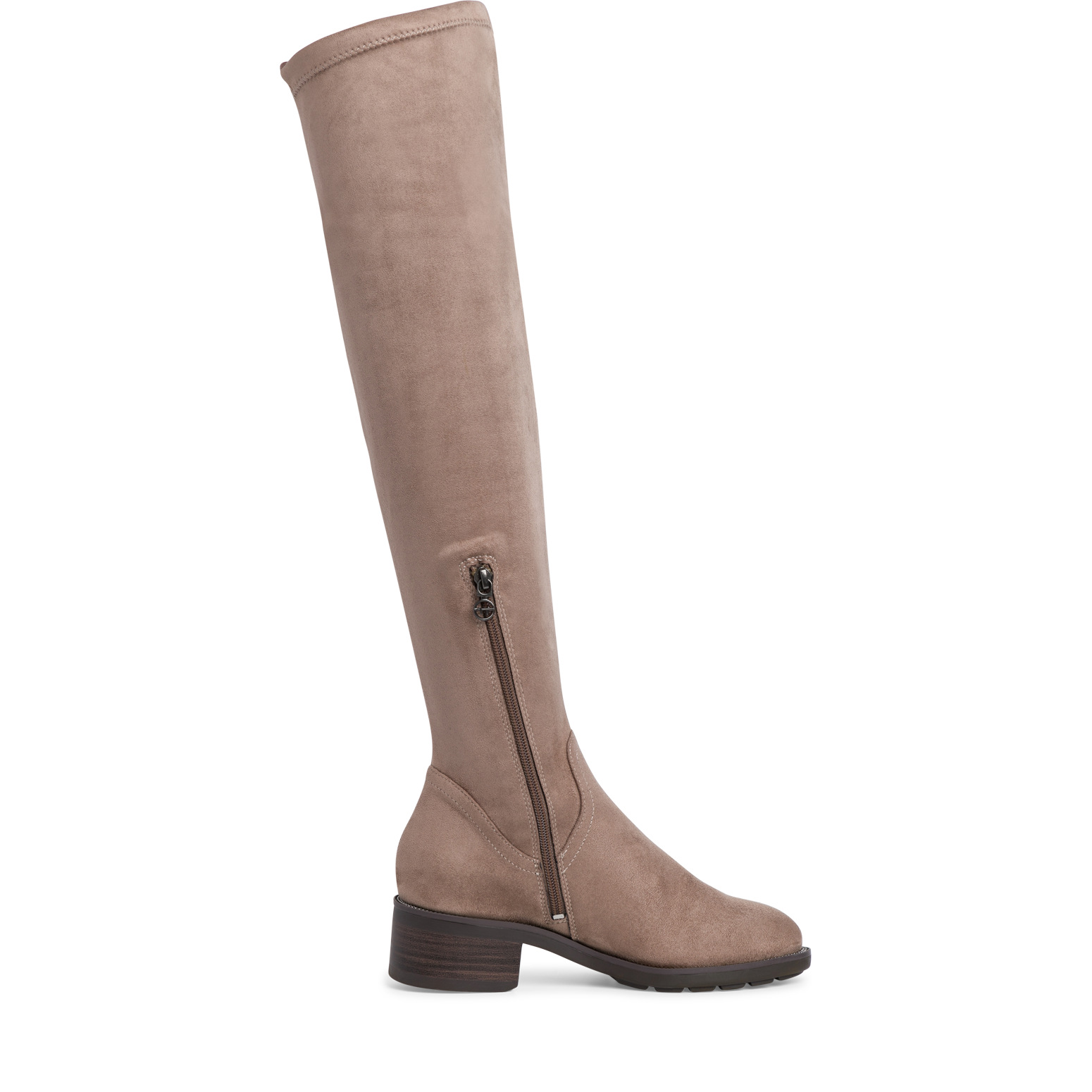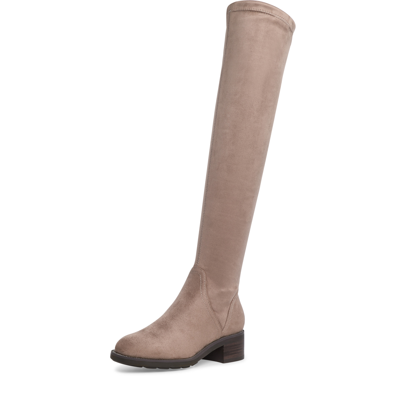 Дамски ботуши от немската марка Tamaris. Външната и вътрешната част на модела са изработени от антибактериални, текстилни материали. Височината на подметката в задната част е 4.5 см. Моделът се обува лесно благодарение на стреч материята и ципа от вътрешната страна.