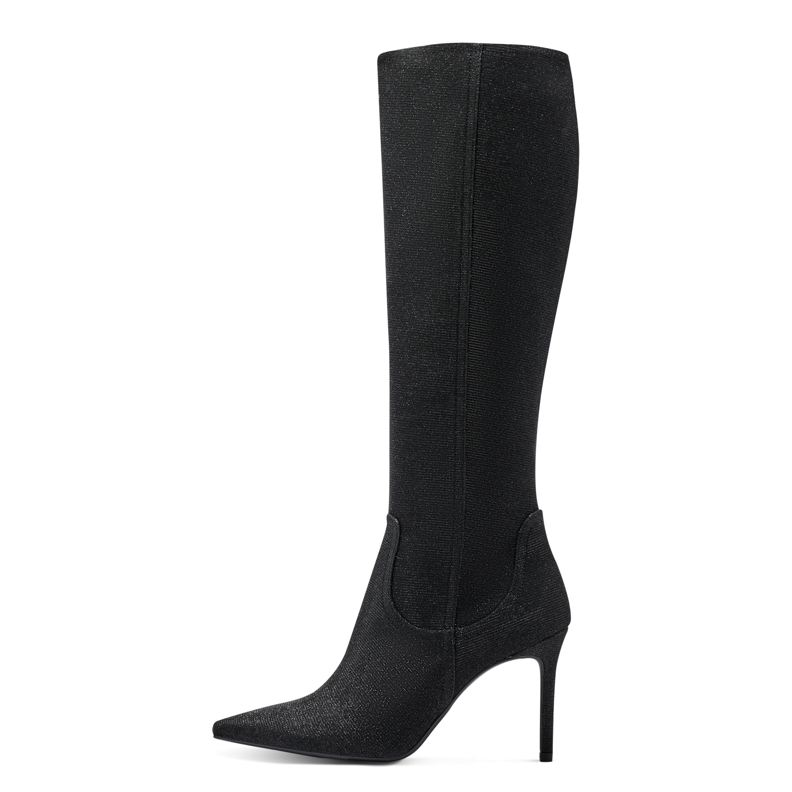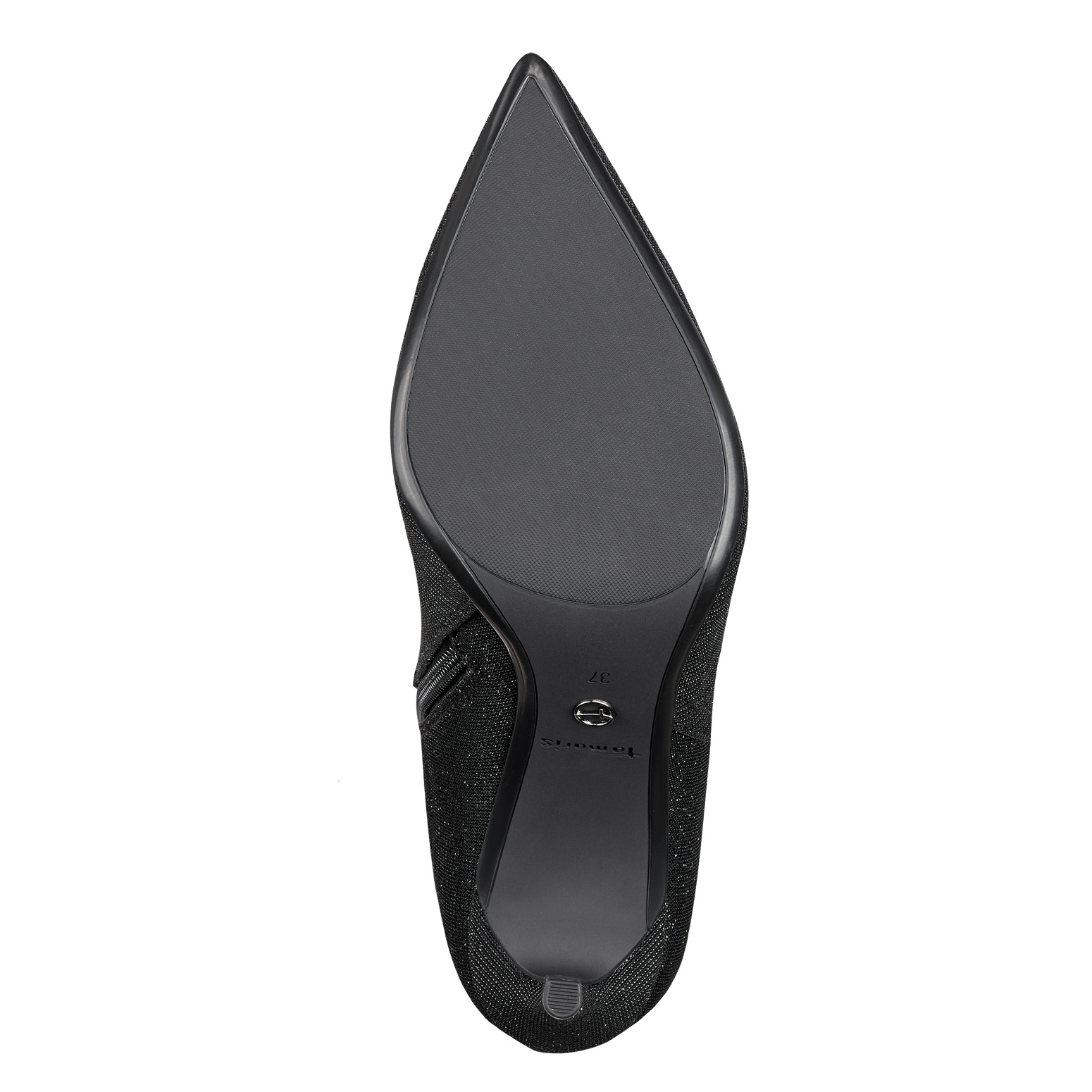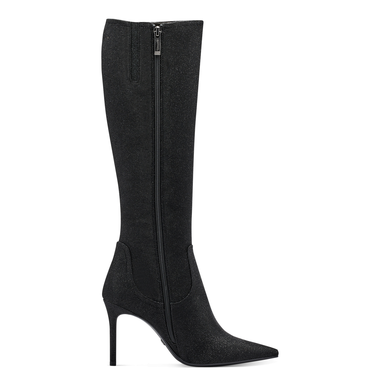Дамски ботуши от немската марка Tamaris. Външната и вътрешната част са изработени от антибактериални, текстилни материали. Височината на тока е 9 см. Моделът се обува лесно благодарение на ципа от вътрешната страна.