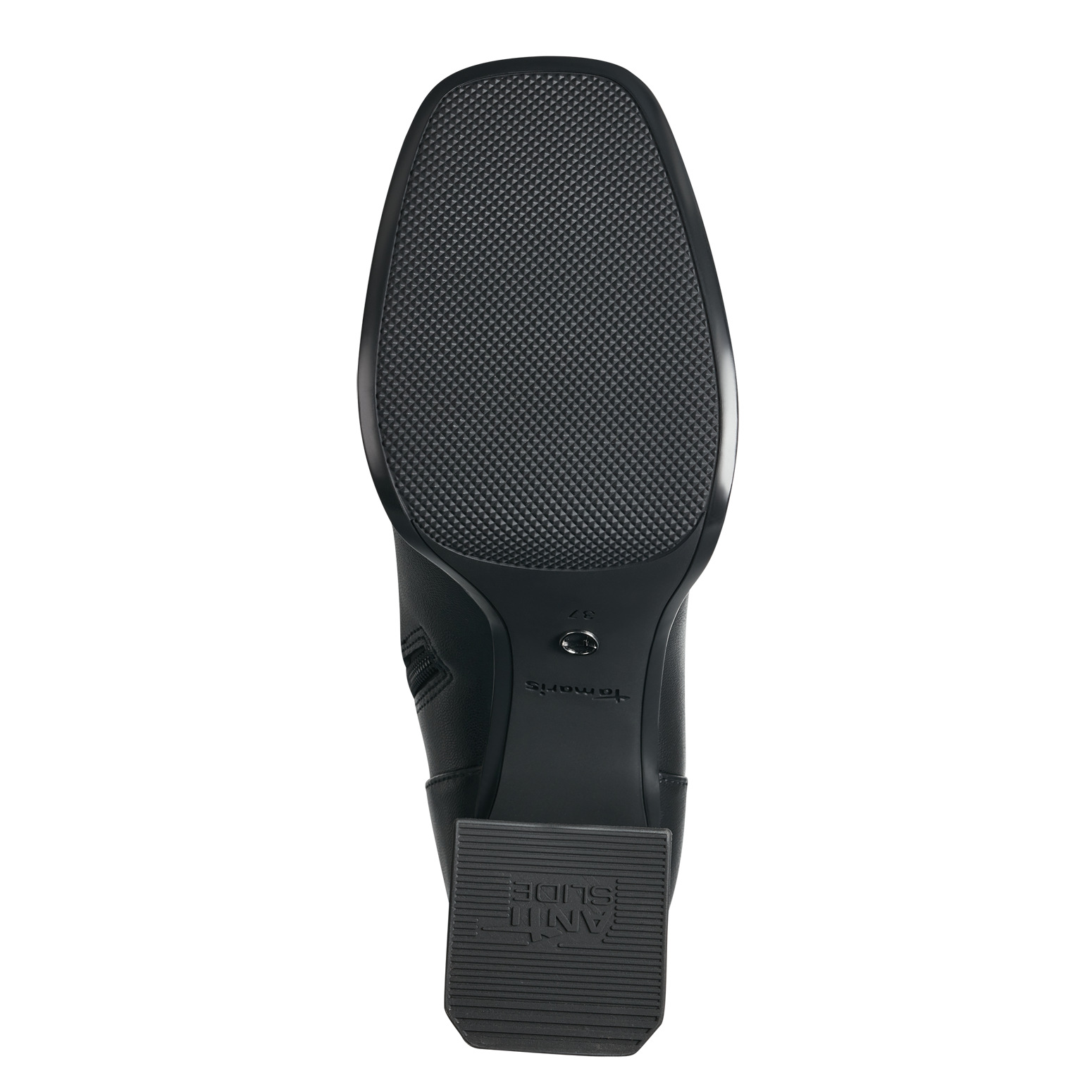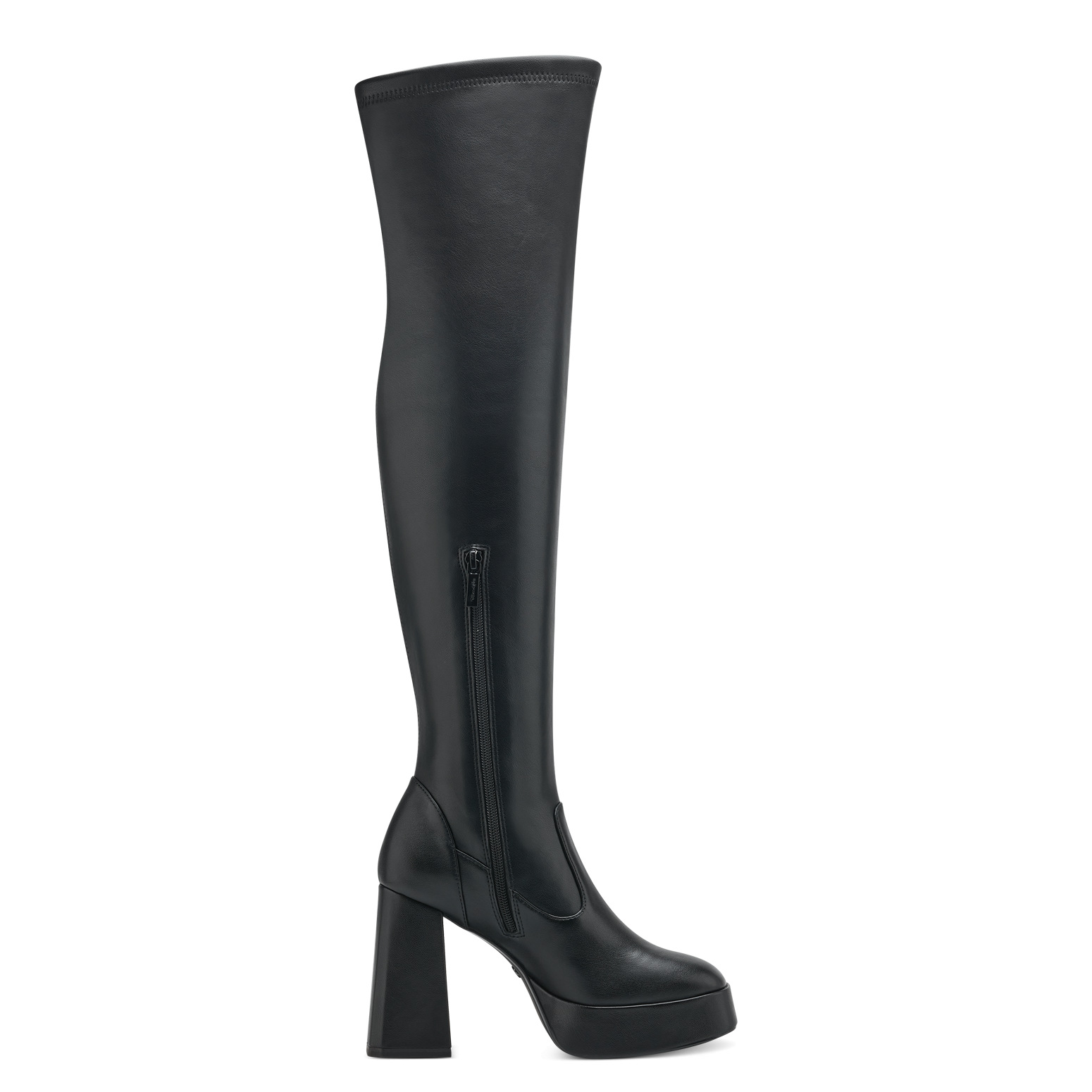 Дамски ботуши от немската марка Tamaris. Външната част е изработена от изкуствена кожа. Вътрешната част на модела е изработен от антибактериални, текстилни материали. Височината на подметката в задната част е 8.5 см. Моделът се обува лесно благодарение на ципа от вътрешната страна.