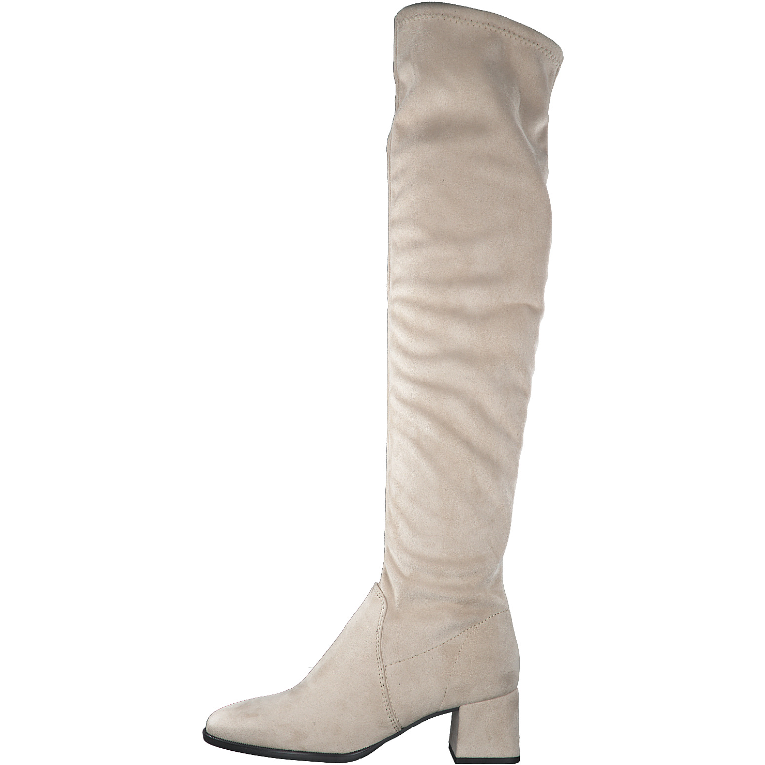 Дамски ботуши от немската марка Tamaris. Външната и вътрешната част на модела са изработени от антибактериални, текстилни материали. Височината на подметката в задната част е 6 см. Моделът се обува лесно благодарение на ципа от вътрешната страна.