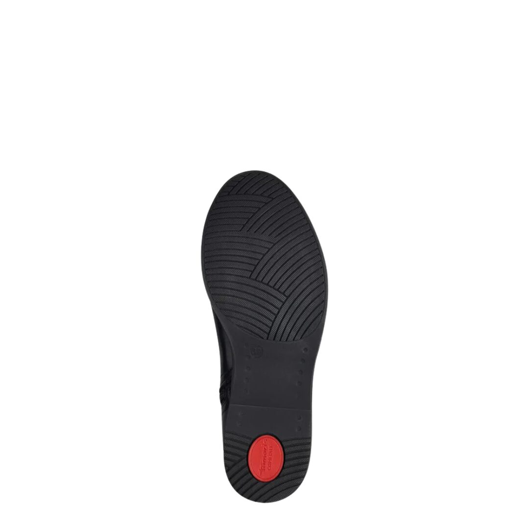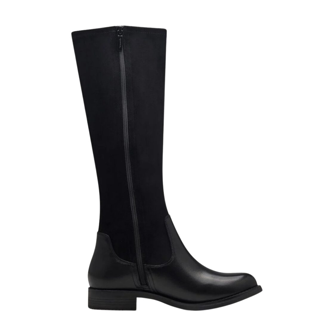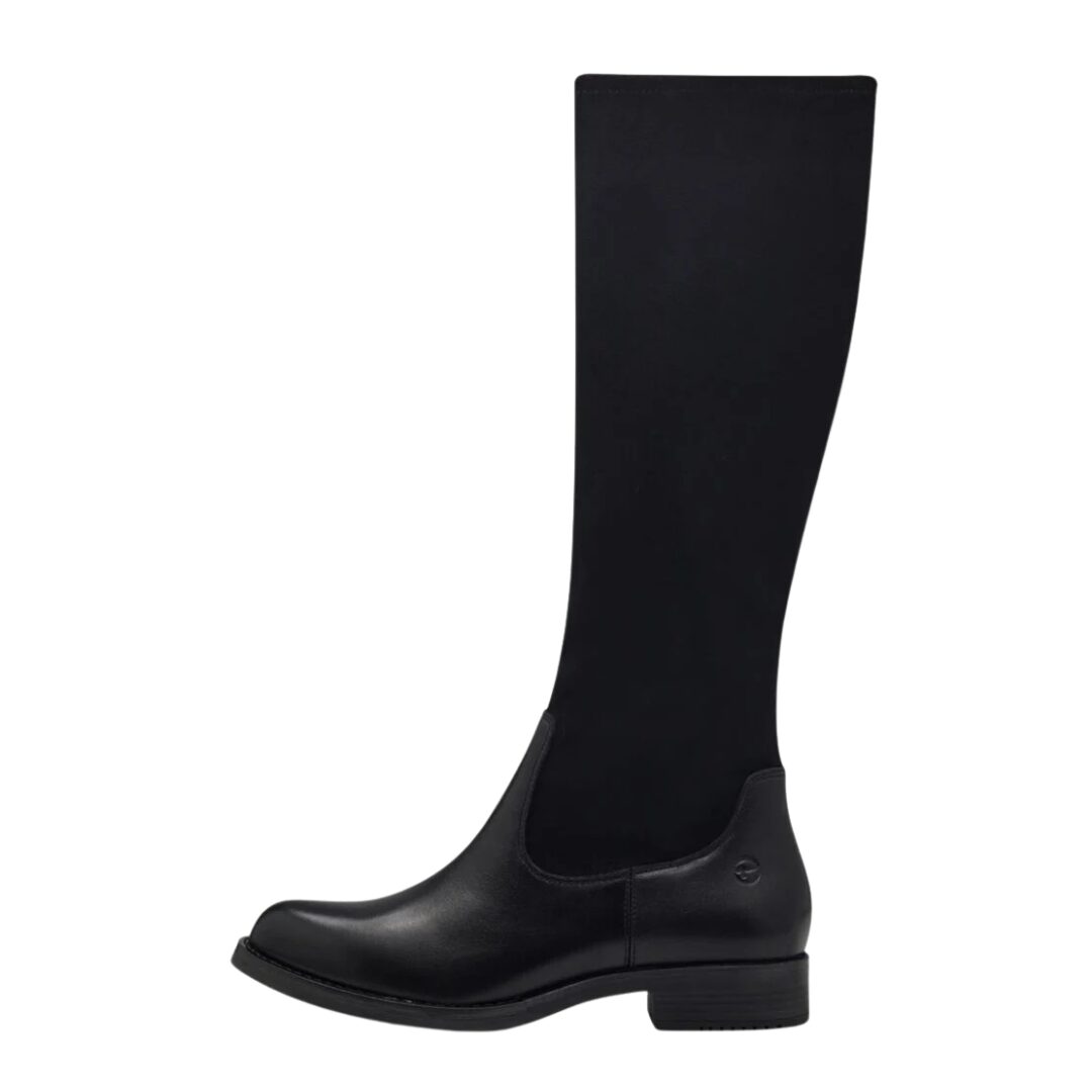 Тези черни ботуши Tamaris впечатляват с изчистена линия и безупречна елегантност. Комбинацията от гладка кожа и еластична горна част осигурява перфектно прилепване към крака и подчертава силуета с изтънчен стил. Ниското токче и меката стелка гарантират удобство през целия ден, а минималистичният дизайн ги превръща в универсален избор за всякакви поводи — от ежедневието до по-официални визии. Модел, който съчетава класика и модерност в едно — символ на женствена простота и увереност.