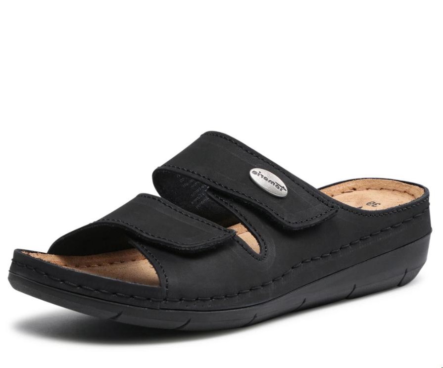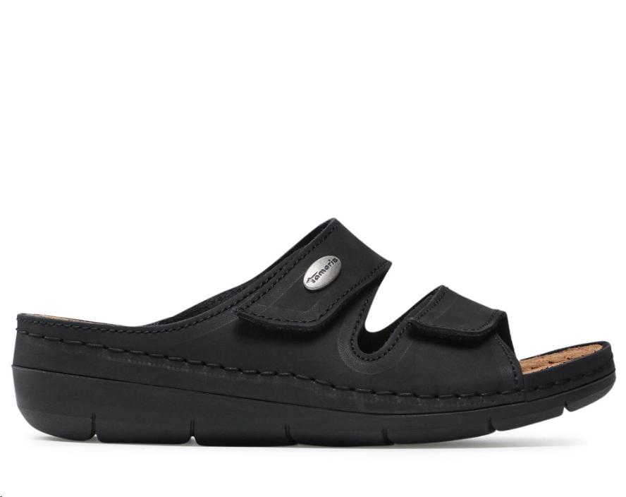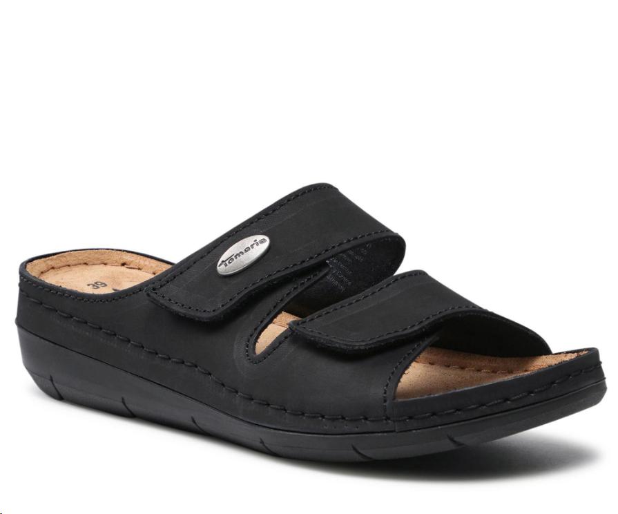 Дамски анатомични чехли естествена кожа Tamaris черни