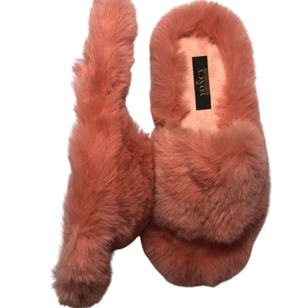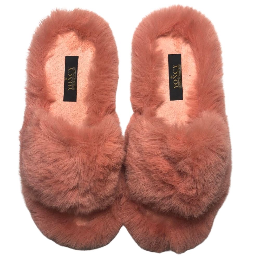Дамски чехли от нашата дизайнерския бранд Yoncy. Изработени са от фългокосмест пух с мека, анатомична стелка.