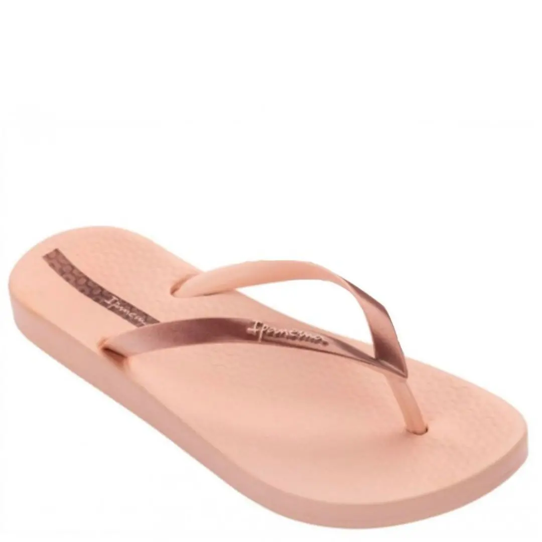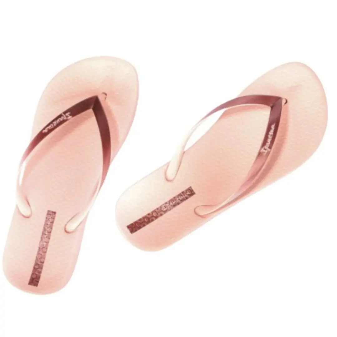 Минималистични, удобни и изключително женствени – тези джапанки от Ipanema предлагат комфорт и стил в едно. Съчетанието на мека прасковено-розова основа и металически розови каишки създава свежо лятно излъчване, подходящо както за плажа, така и за градска разходка.