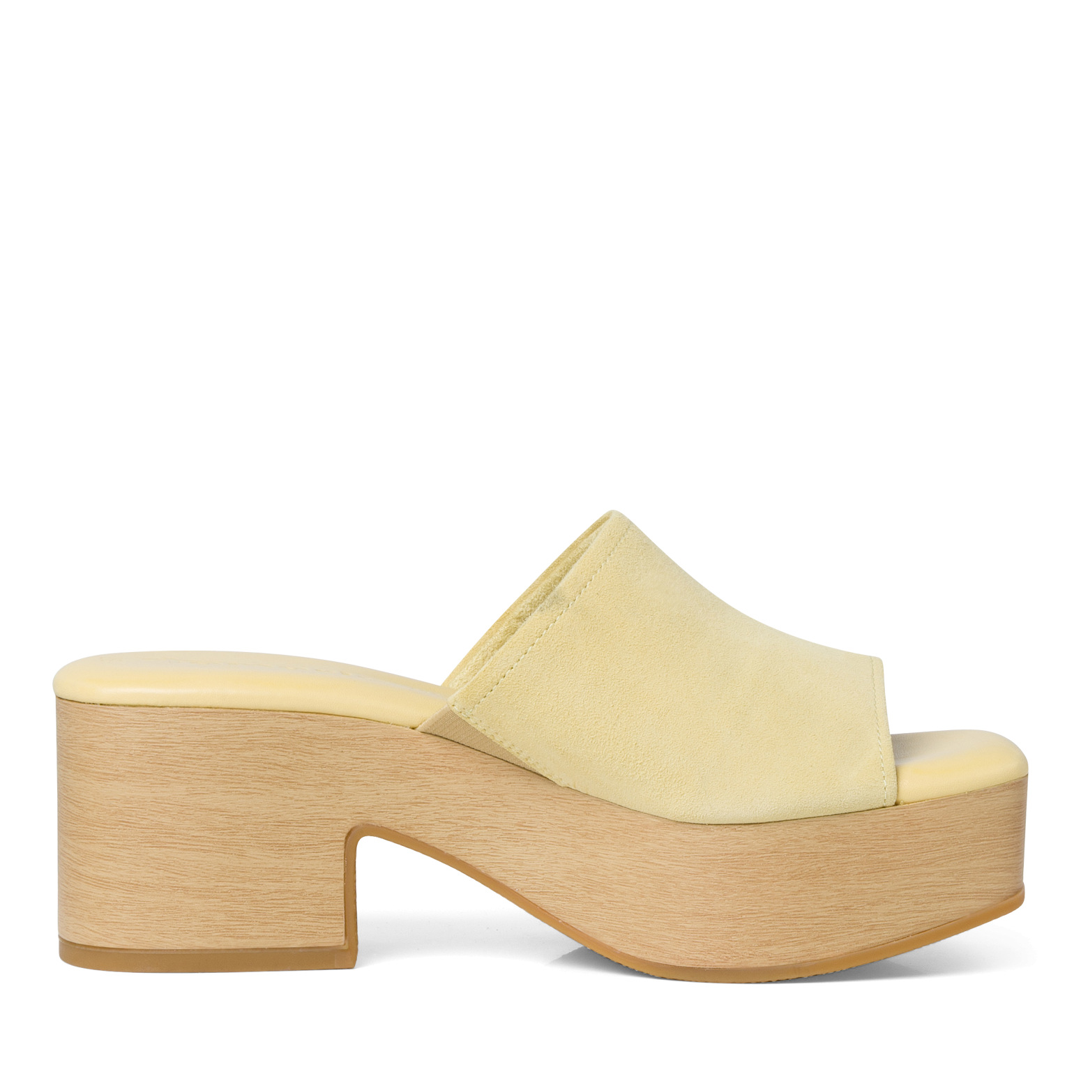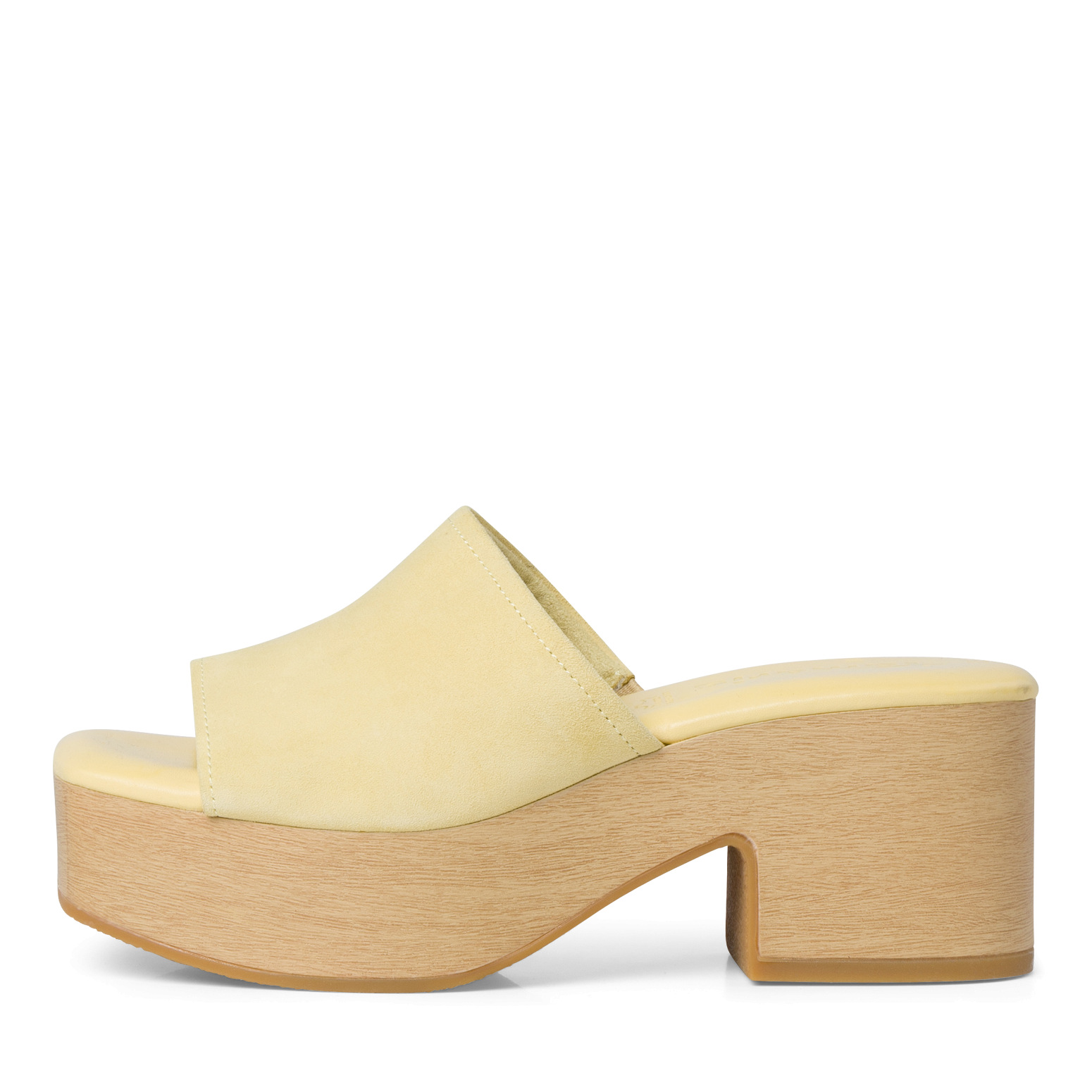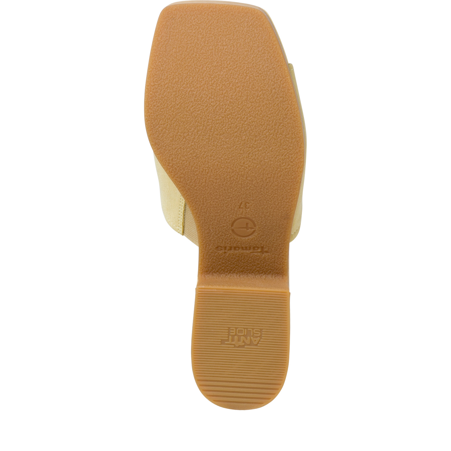 Дамски чехли на ток Tamaris естествена кожа жълти