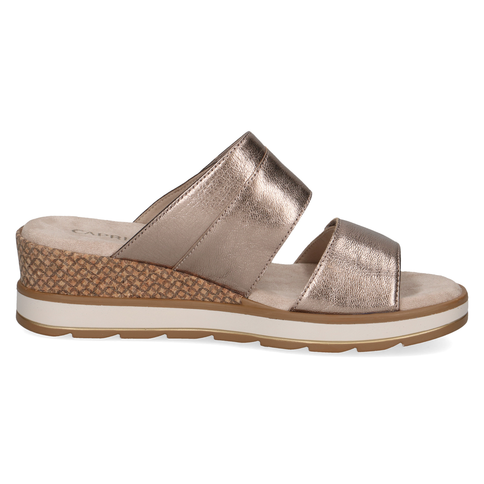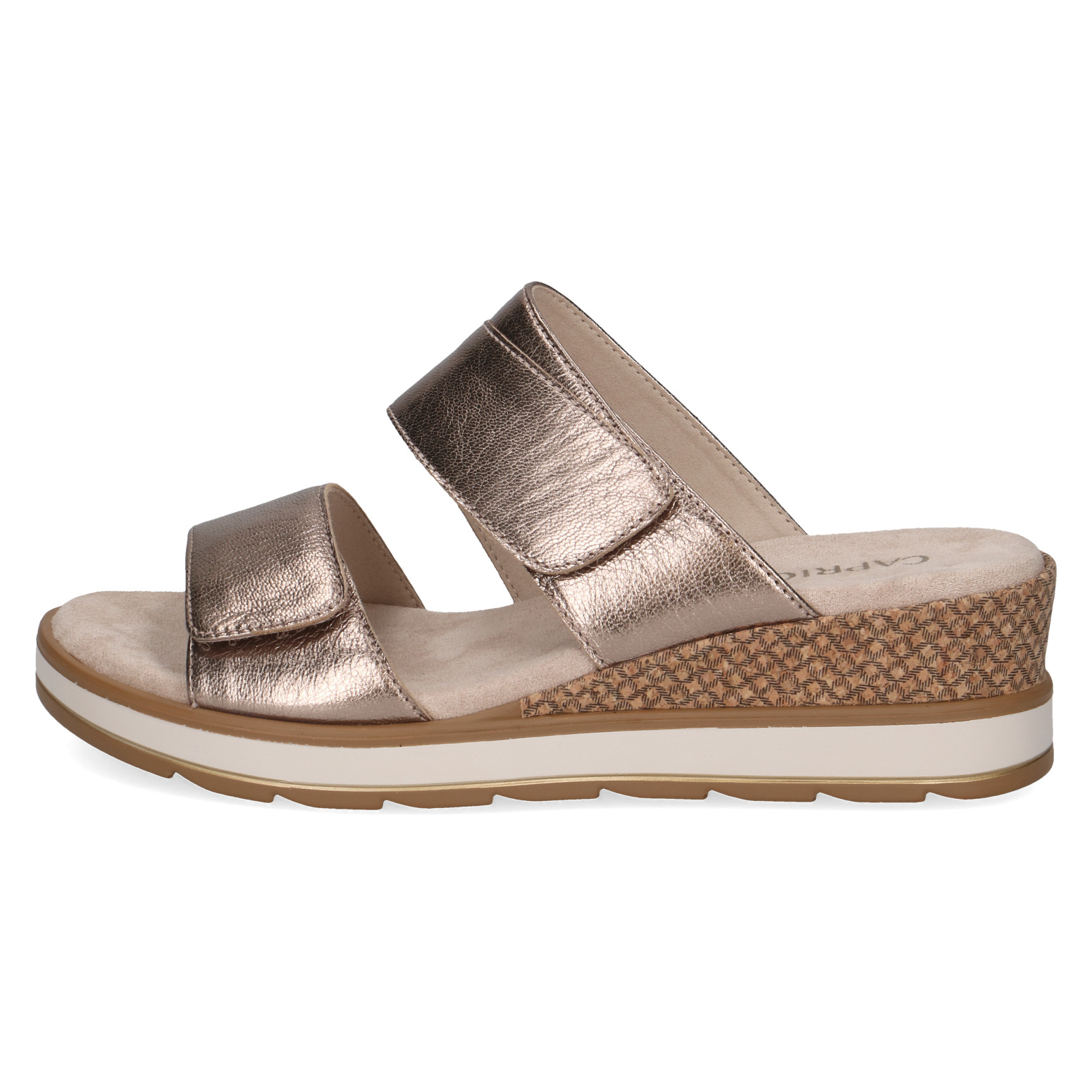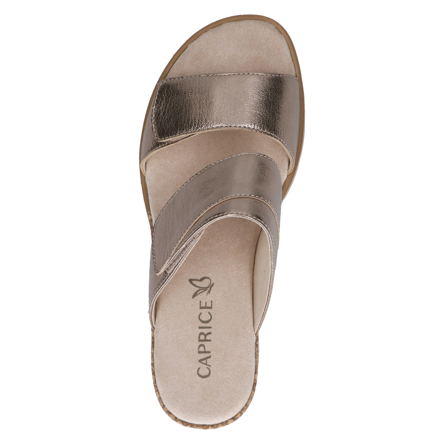 Дамските чехли на Caprice от новата колекция впечатляват с удобното си прилягане и външна и вътрешна част от еко-кожа и текстилни материали. С ширина на обувката G и практично велкро закопчаване, те предлагат оптимална опора. Върхът на обувката е заоблен, а височината на платформата е 4.5 см. Благодарение на технологията CAP Memotion, те осигуряват удобно прилягане.