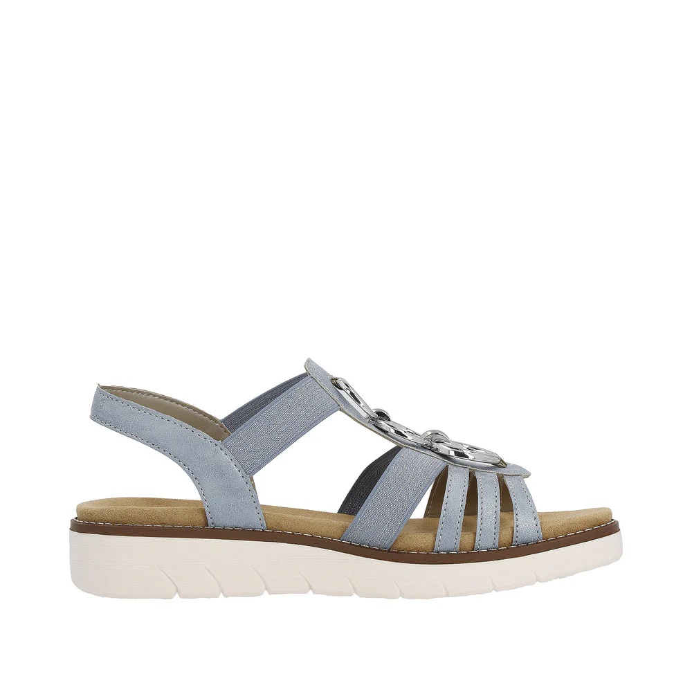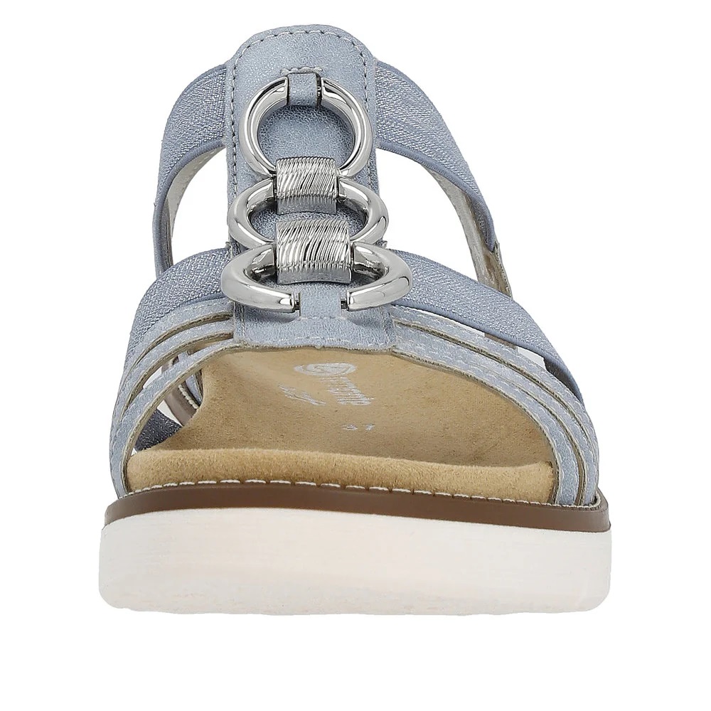 Дамски сандали от световноизвестната, комфорт марка Rеmonte. Сандалите са изработени от висококачествена, еко-кожа и текстилни материали, които предпазват стъпалата Ви от алергии и изпотяване. Дебелината на подметката в задната част е 3.5 см.