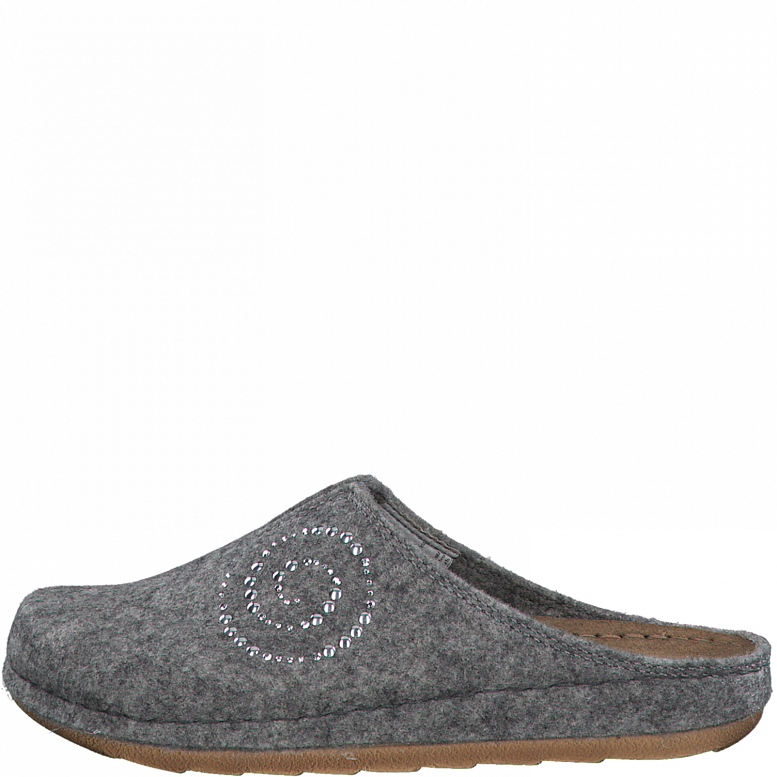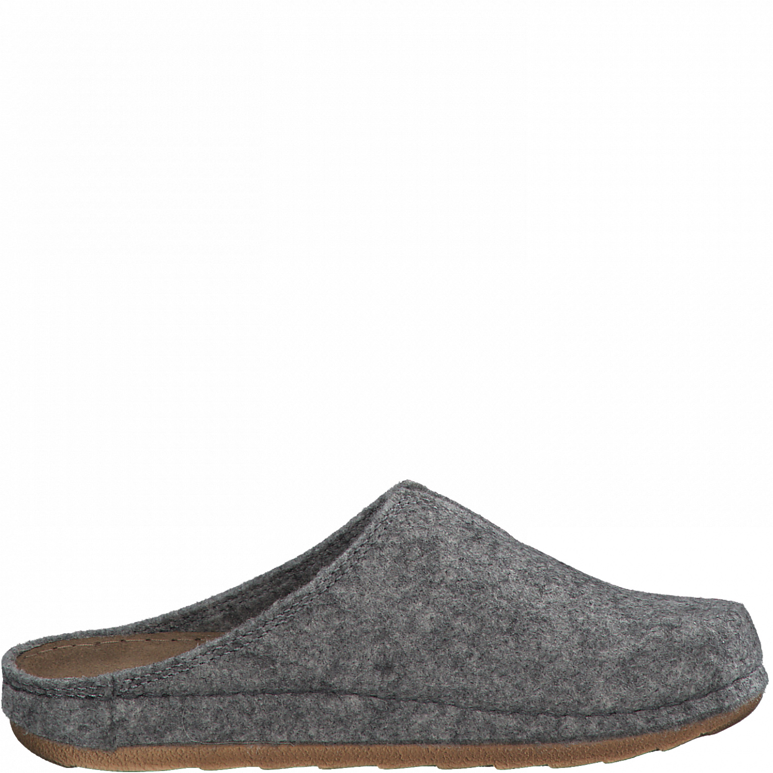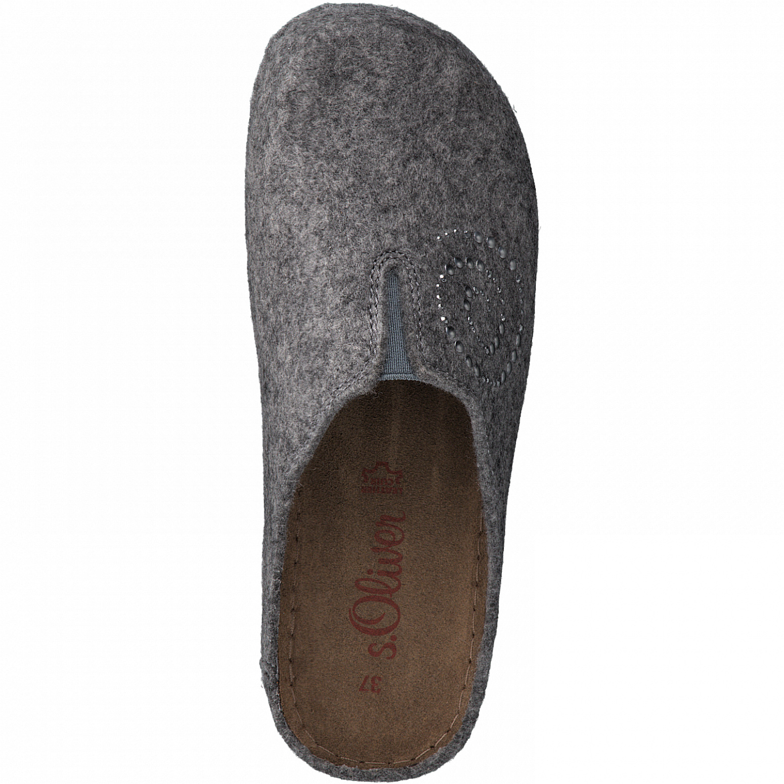 Дамски домашни чехли от марката s.Oliver. Външната част е изработена от текстилни материали. Вътрешната част се състои от текстилни материали и мека, анатомична стелка от естествена кожа. Височината на ходилото в задната част е 2.5см.