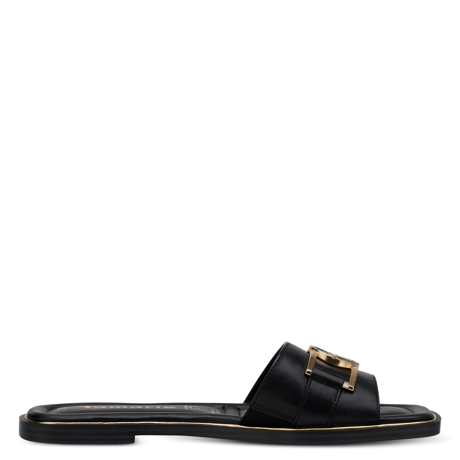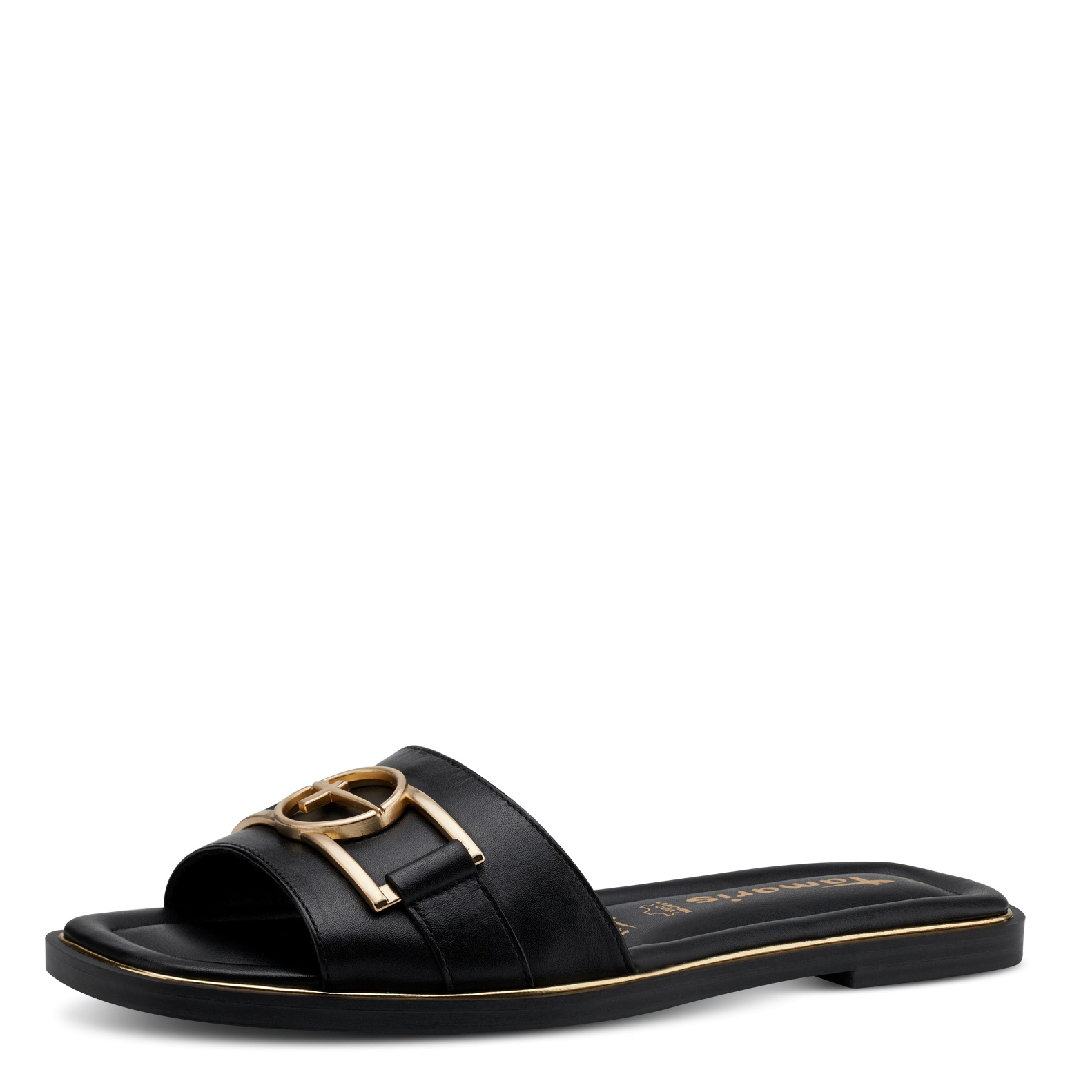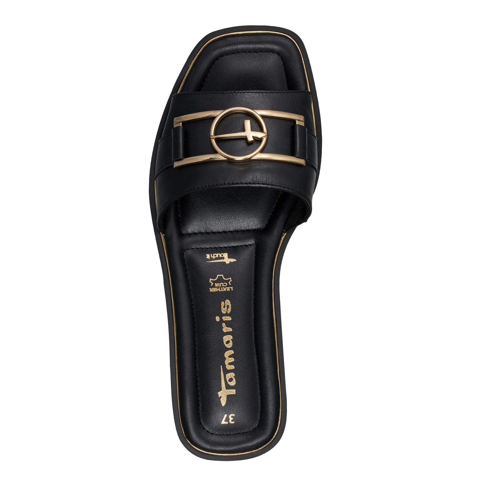 Елегантни дамски равни чехли Tamaris ANTISLIDE естествена кожа черни