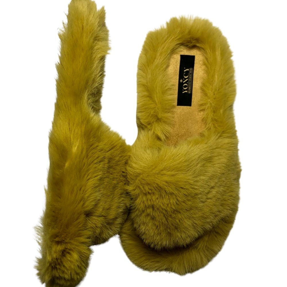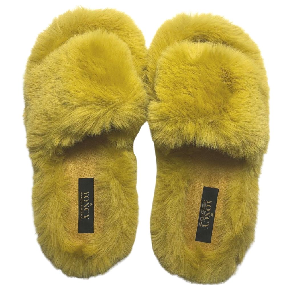 Дамски чехли от нашата дизайнерския бранд Yoncy. Изработени са от дългокосмест пух с  мека, анатомична стелка.