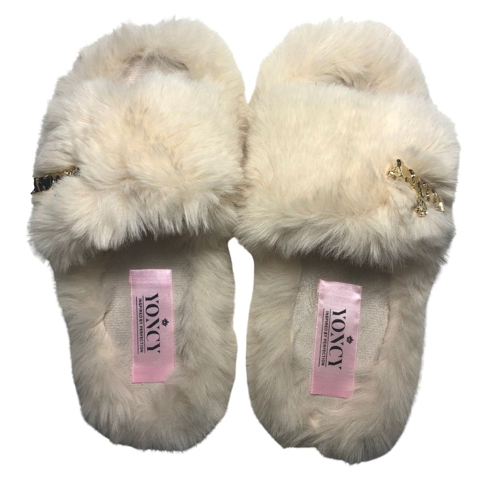 Дамски чехли от нашата дизайнерския бранд Yoncy. Изработени са от фългокосмест пух с мека, анатомична стелка.