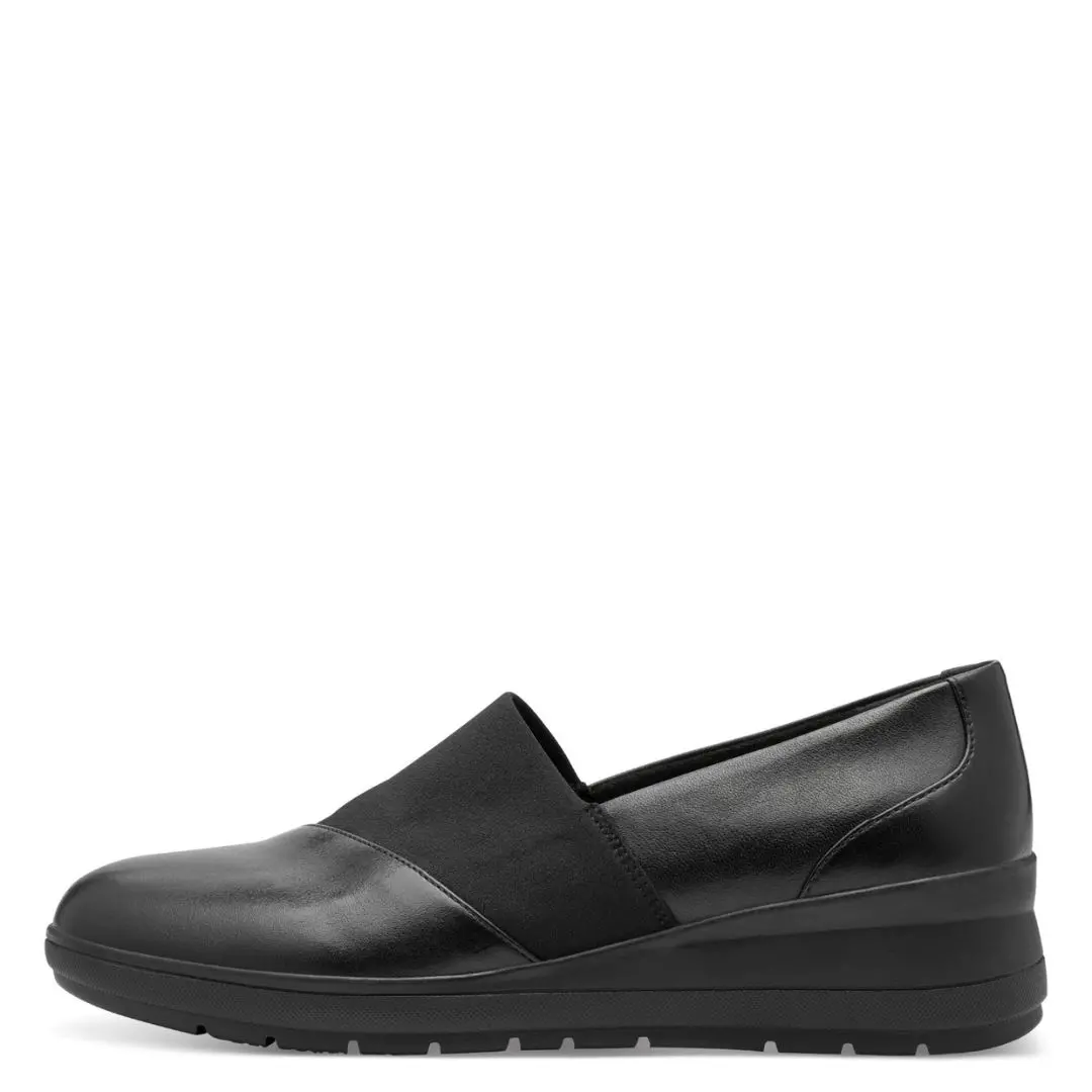 Тези дамски обувки Jana предлагат отлично съчетание от естествена кожа и изкуствена кожа във външната част, осигурявайки здравина, гъвкавост и стилна визия. Горната зона е допълнена с еластична текстилна част, която улеснява обуването и гарантира перфектно прилягане към крака.