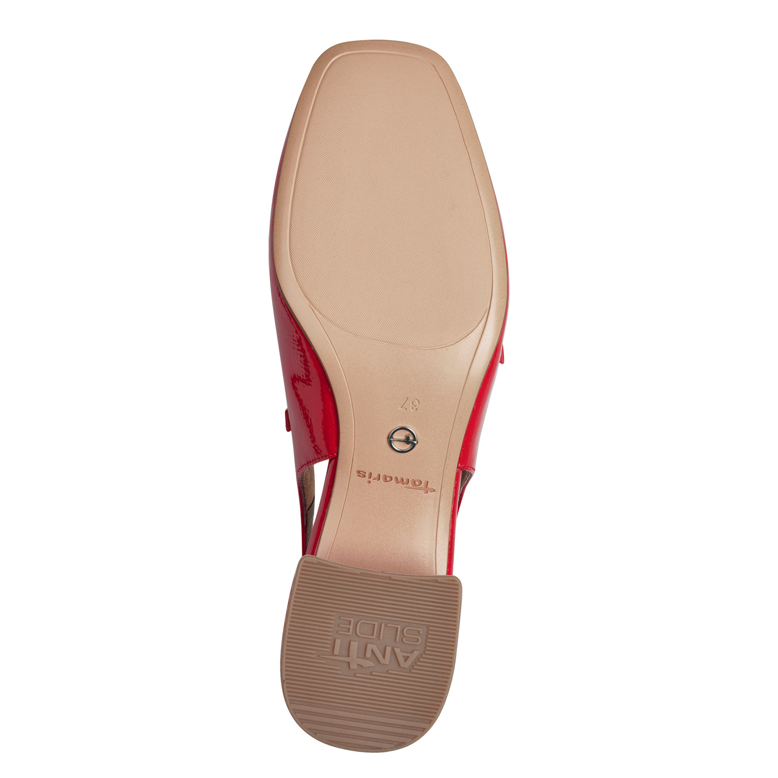 Дамски обувки от немската марка Tamaris. Външната част е изработена от висококачествена еко-кожа. Вътрешната част е изработена от комбинация на естествена и еко-кожа. Височината на ходилото в задната част е 4 см. Практичното затваряне ви позволява да го регулирате индивидуално, докато G-ширината осигурява достатъчно пространство.