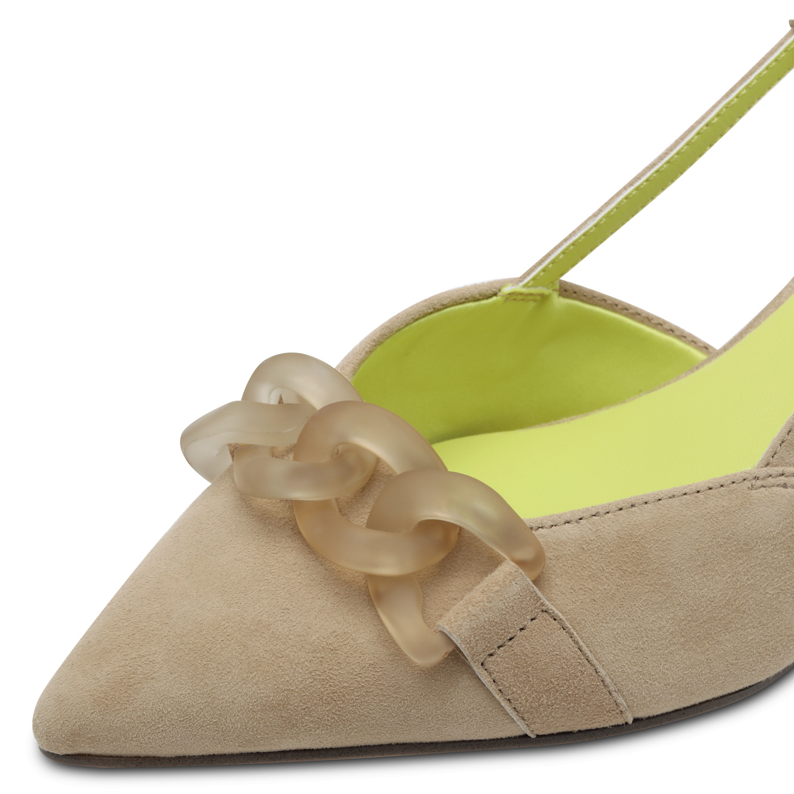 Външната част е изработена от естествена кожа(велур). Вътрешната част е комбинация от изкуствена кожа и текстилни материали. Технологията за изработка на стелката ви гарантира оптимален комфорт на ходилото. Височината на тока е 5.5 см.
