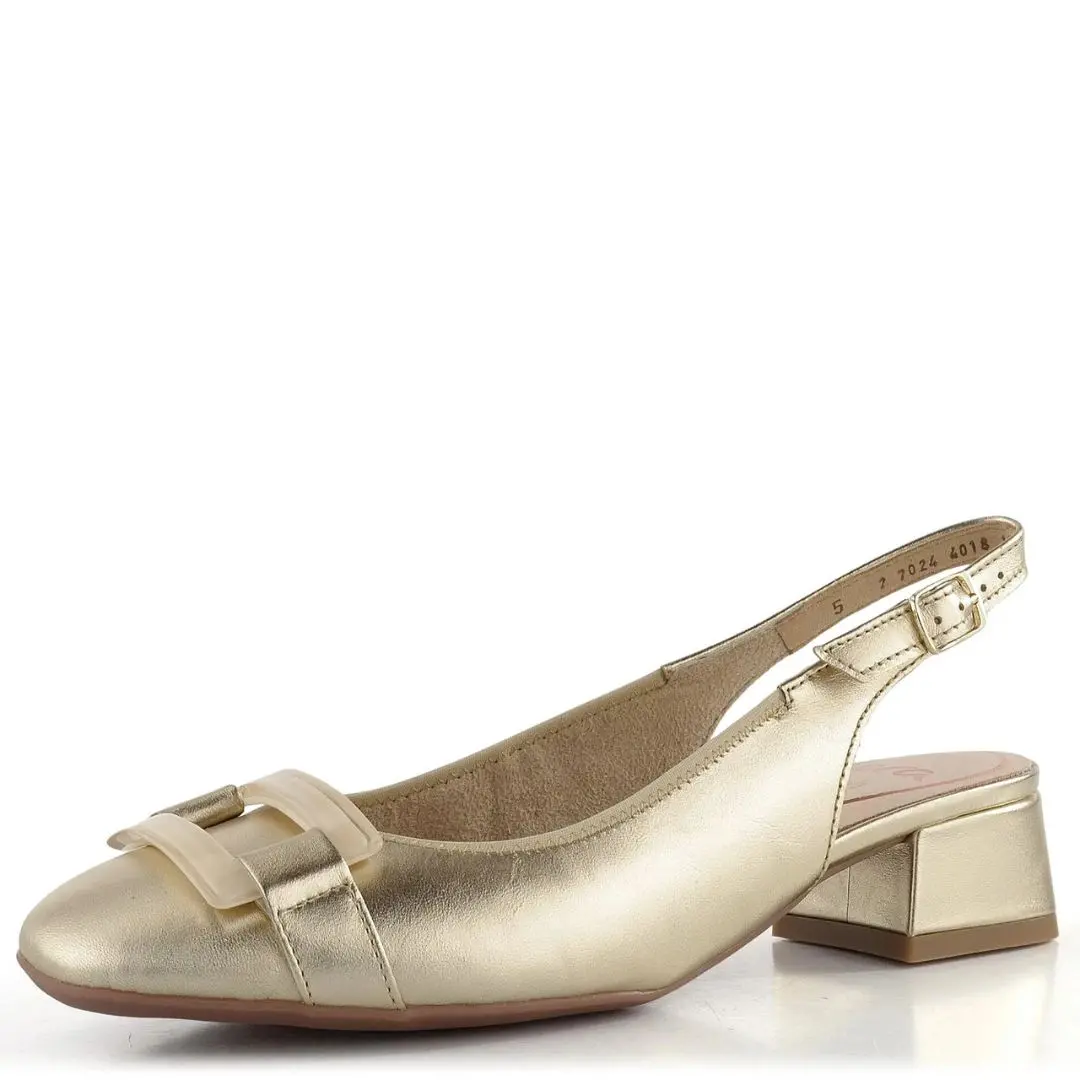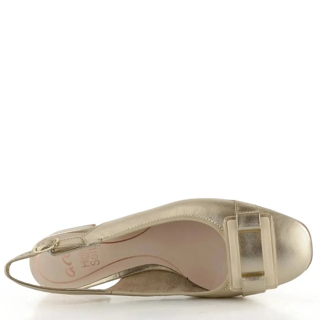 Дамски кожени обувки на нисък ток Ara H ширина златисти