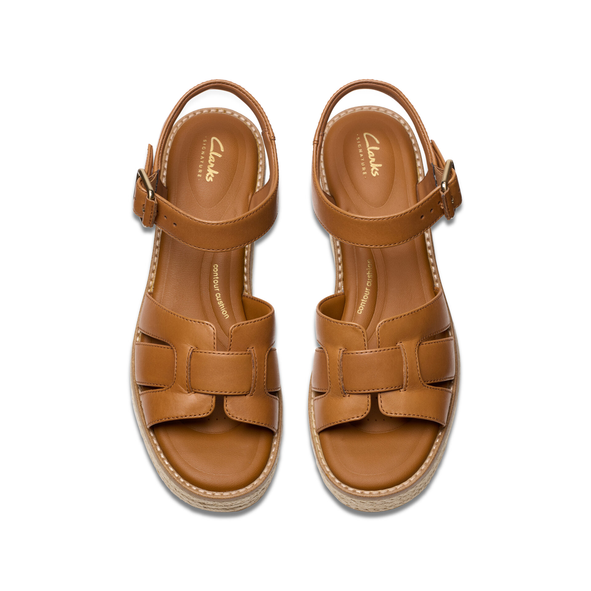 Елегантен модел дамски кожени сандали от Clarks, комбиниращ класическа визия с модерен комфорт. Сандалите са изработени от висококачествена естествена кожа в топъл кафяв (карамелен) цвят. Емблематична стелка Contour Cushion запазва комфорта при ходене. Вътрешната част е комбинация на естествена и еко-кожа. Закопчването е с катарама, а височината на тока е 6.5см.