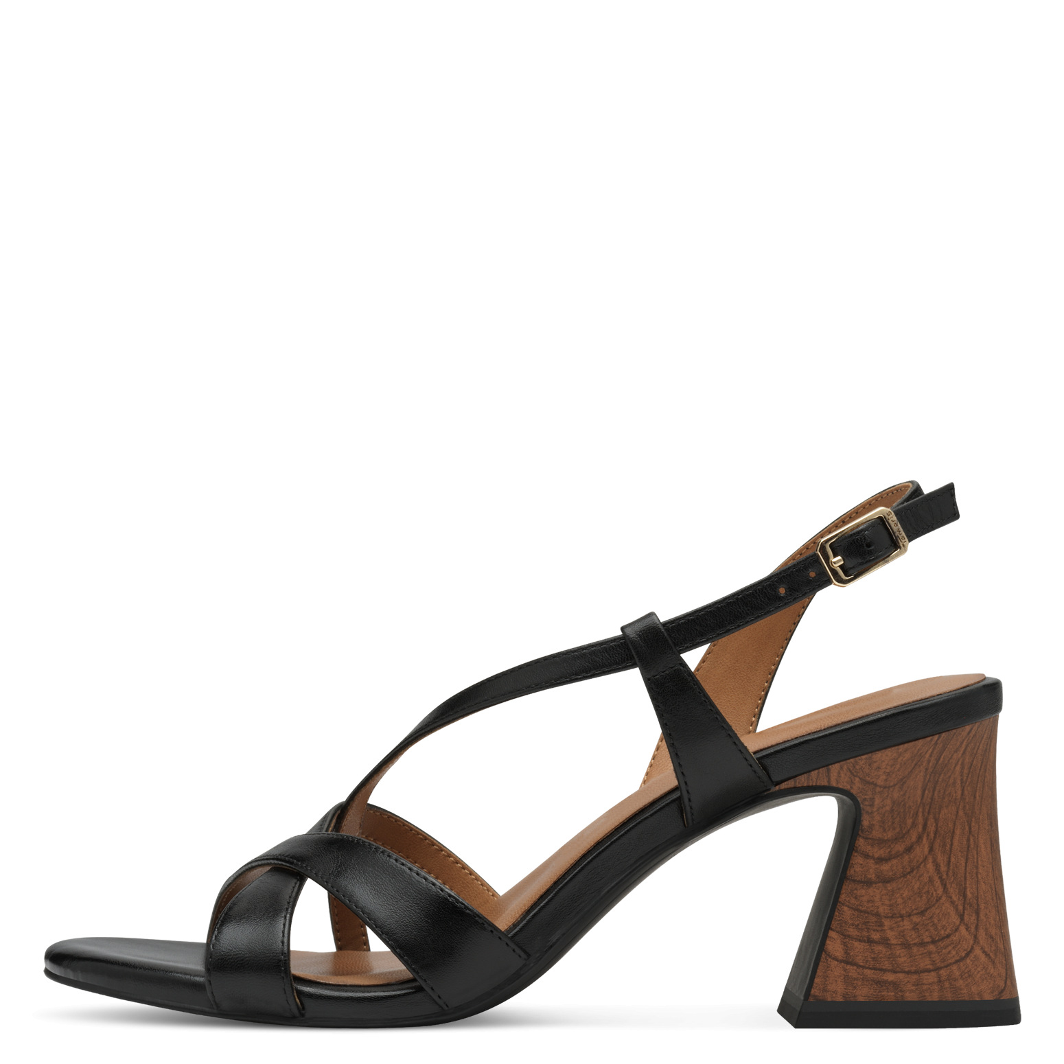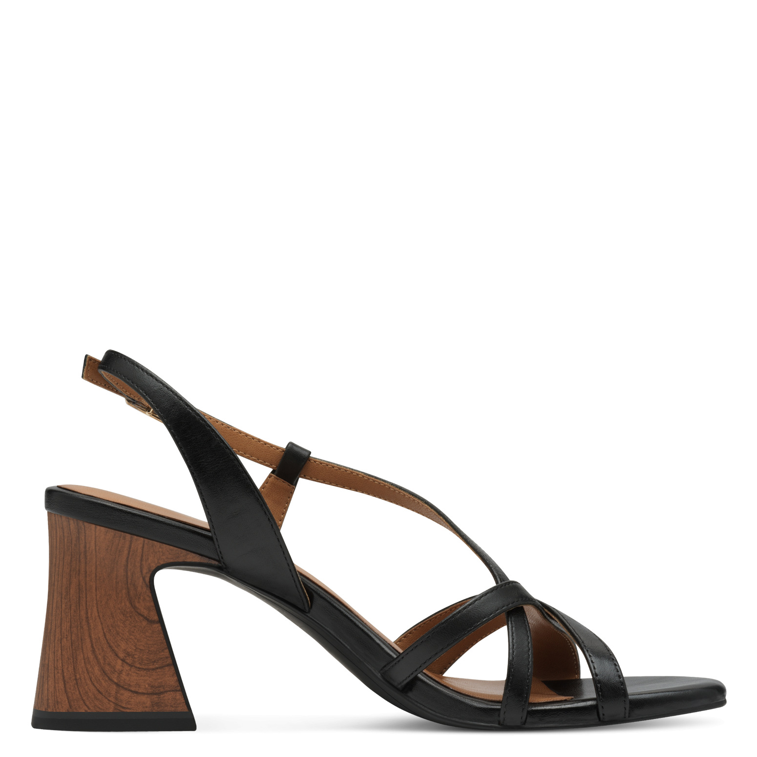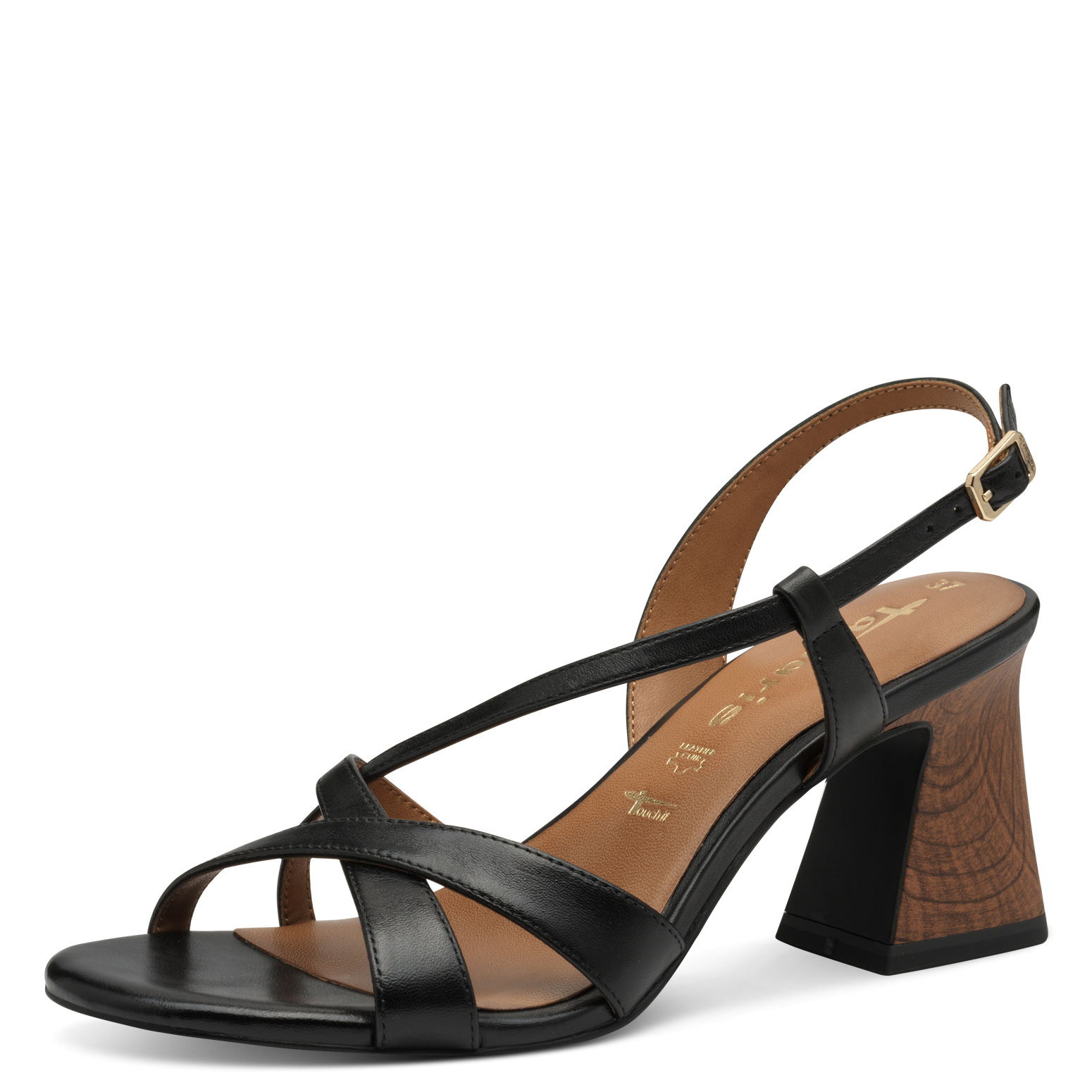 Дамски кожени сандали на ток Tamaris Touch-it черни
