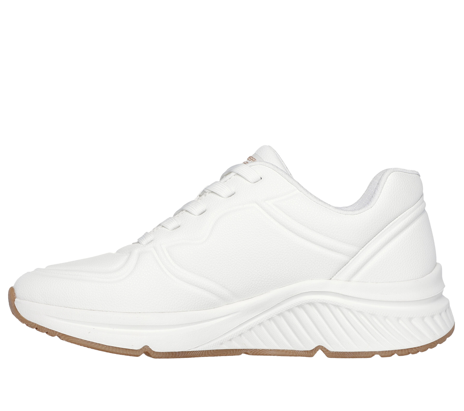 Дамски спортни обувки от световноизвестната марка Skechers. Външната част е изработена от изкуствена кожа. Вътрешната част също е изработена от антибактериален текстил и анатомично оформена стелка с мемори пяна. Гъвкава и лека подметка с шокабсорбиращи свойства намаляващи напрежението по време на ходене.