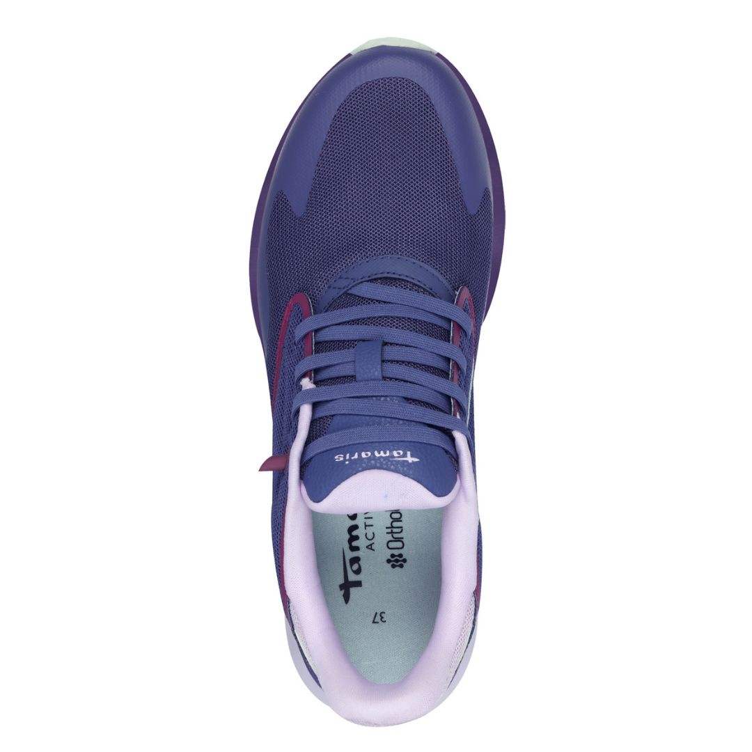 Дамски маратонки от немската марка Tamaris. Изработени от еко-кожа и текстил. Вътрешната част се състои от антибактериален текстил, който предпазва ходилата от алергии и изпотяване. Стелките са с мемори пяна. Обуването става лесно чрез ластични връзки. Височината на подметката в задната част е 3см.