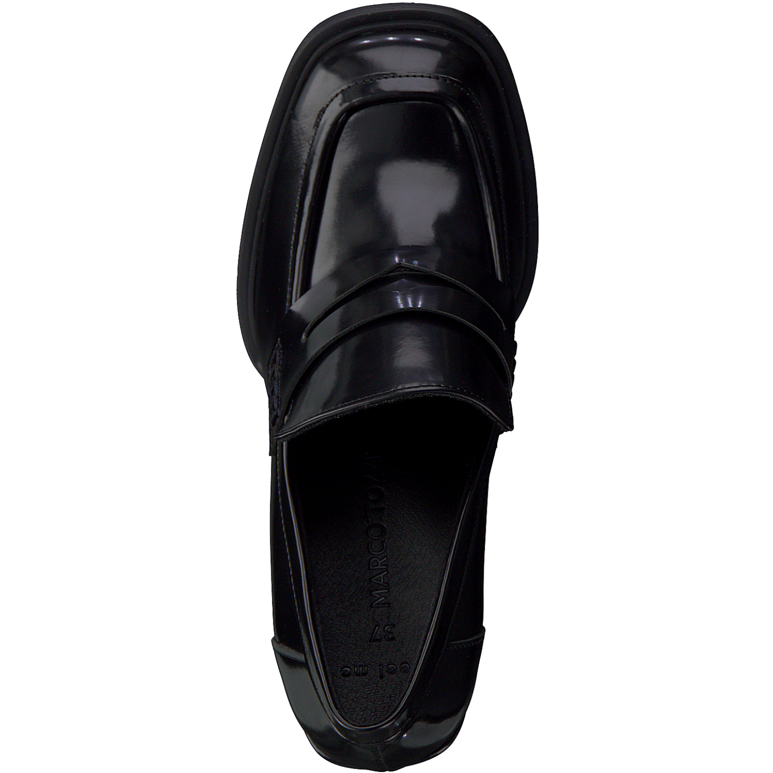 Дамски обувки от световноизвестната марка Marco Tozzi. Външната част е изработена от висококачествена еко-кожа, покрита с лак. Хастарът се състои  от топъл антибактериален текстил. Мека анатомична стелка се грижи за оптималния Ви комфорт. Обуват се лесно с помощта на връзките. Височината на подметката е 8 см.