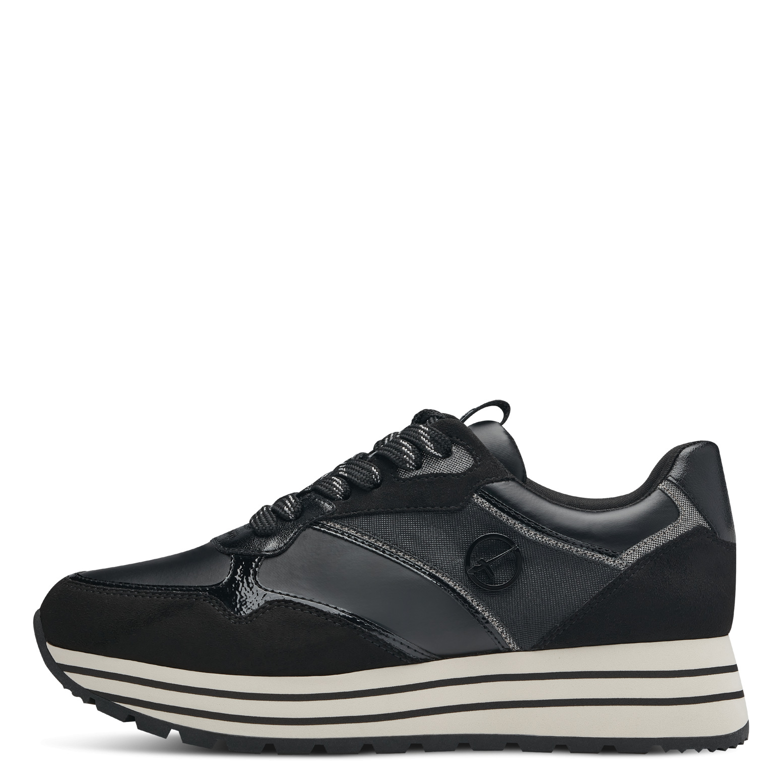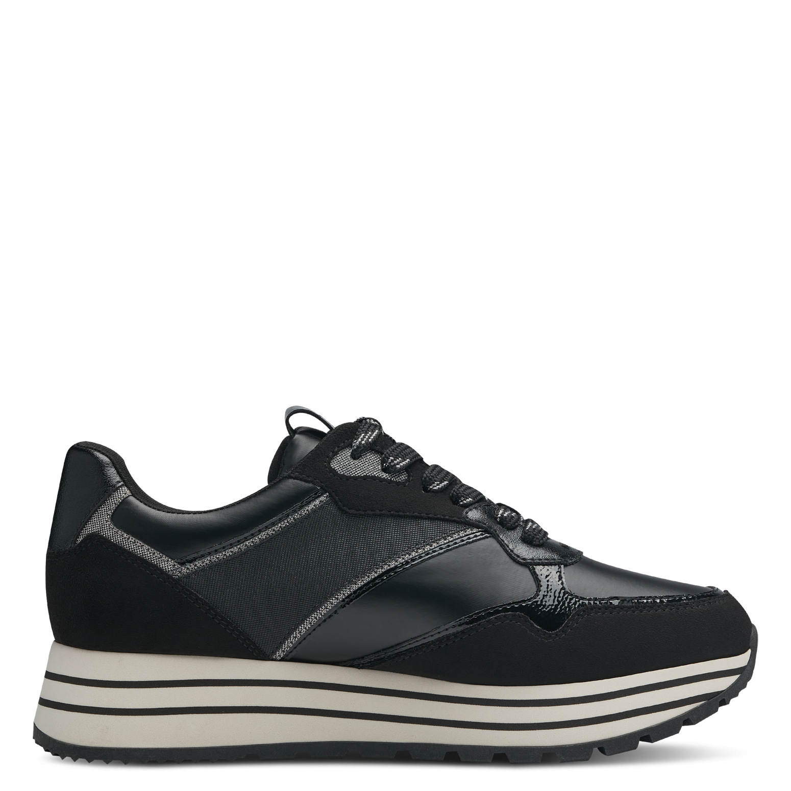 Дамски спортни обувки от немската марка Tamaris. Външната част е изработена от изкуствена кожа в комбинация с текстилни материали. Хастара се състои от антибактериален текстил и еко-кожа. Стелката на модела е с мемори пяна, която допринася за оптималния комфорт. Подметка е олекотена, с отлични качества на еластичност и анатомична форма. Височината на ходилото в задната част е 4 см.