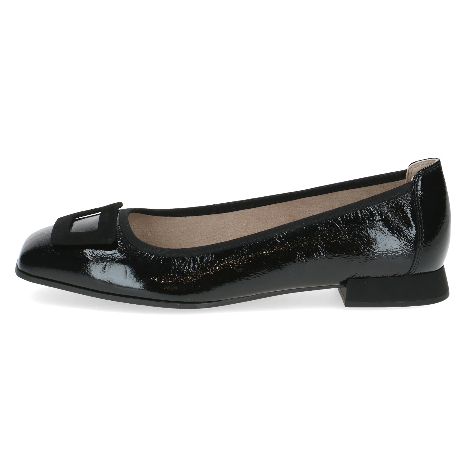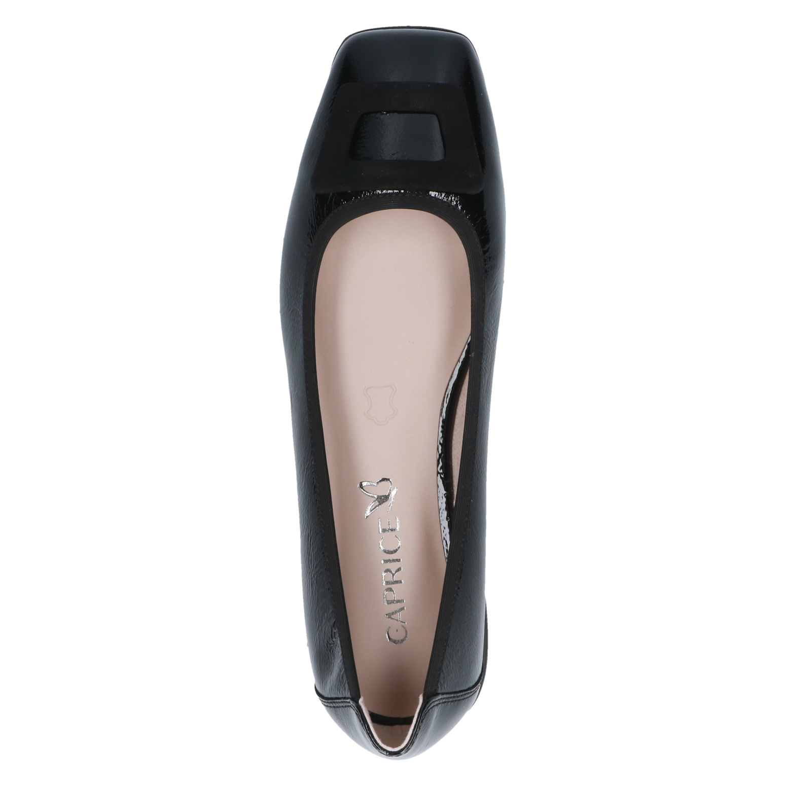 Дамски обувки от немската марка Caprice. Външната част е изработена от естествена кожа покрита с лак. Вътрешната част е комбинация от естествена кожа и изкуствена кожа. Височината на тока е 2см. Подметката е лека и с изключителни качества на еластичност.