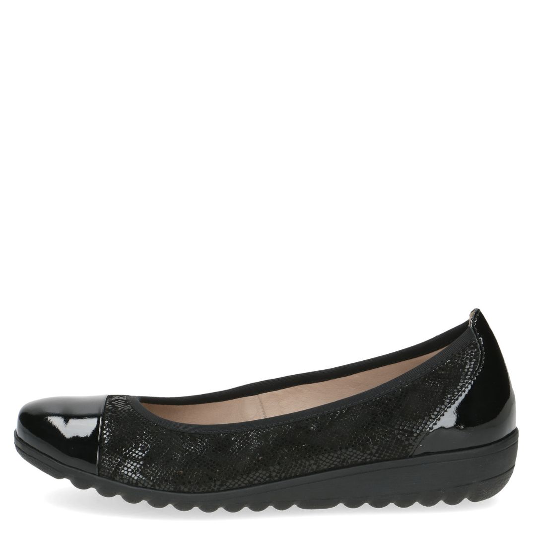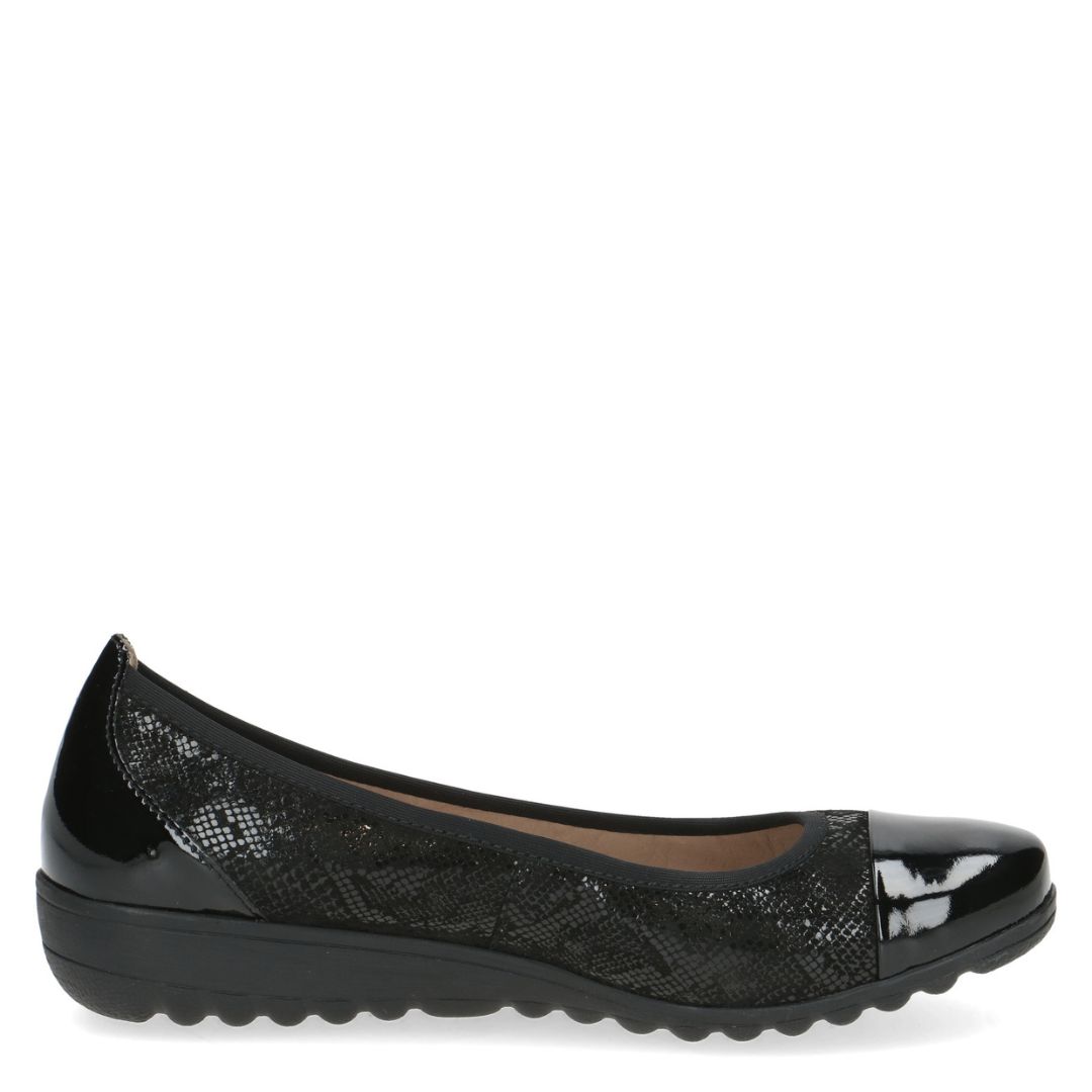 Дамски обувки от немската марка Caprice. Външната част е изработена от естествена кожа. Вътрешната част е комбинация от естествена кожа и изкуствена кожа. Височината на подметката е 2.5см. Подметката е лека и с изключителни качества на еластичност.