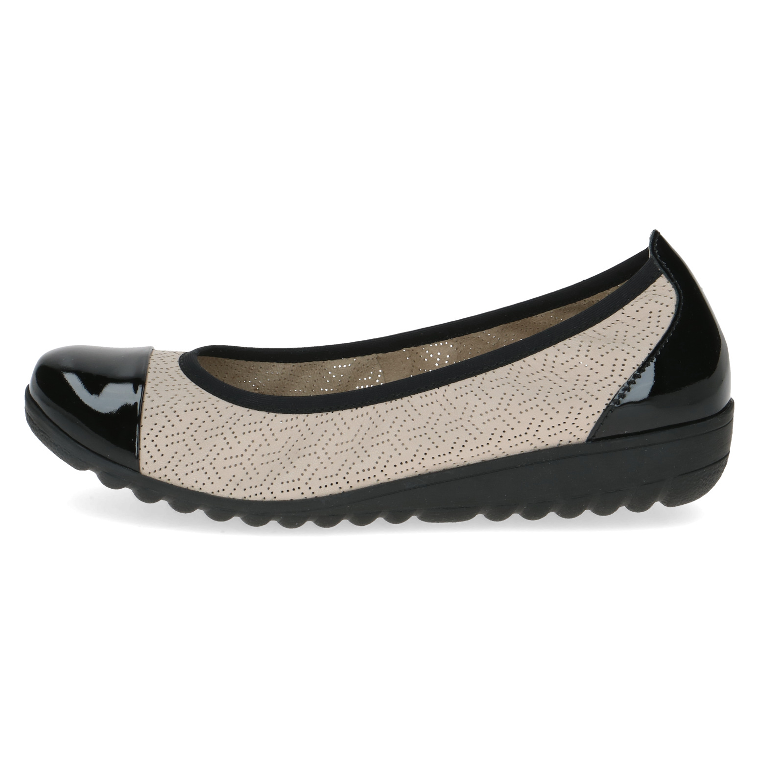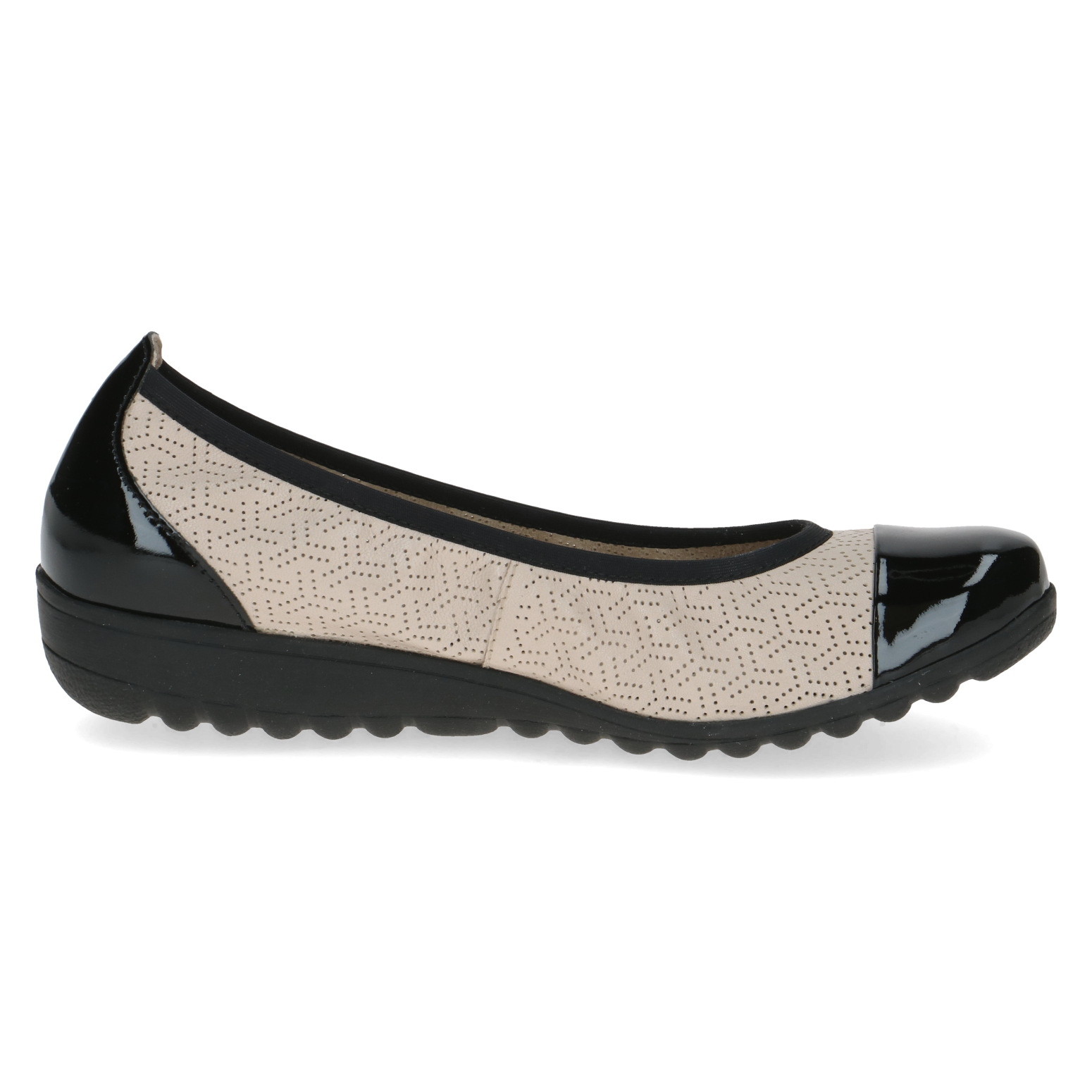 Дамски обувки от немската марка Caprice. Външната част е изработена от естествена кожа. Вътрешната част е комбинация от естествена кожа и изкуствена кожа. Височината на подметката е 2.5см. Подметката е лека и с изключителни качества на еластичност.