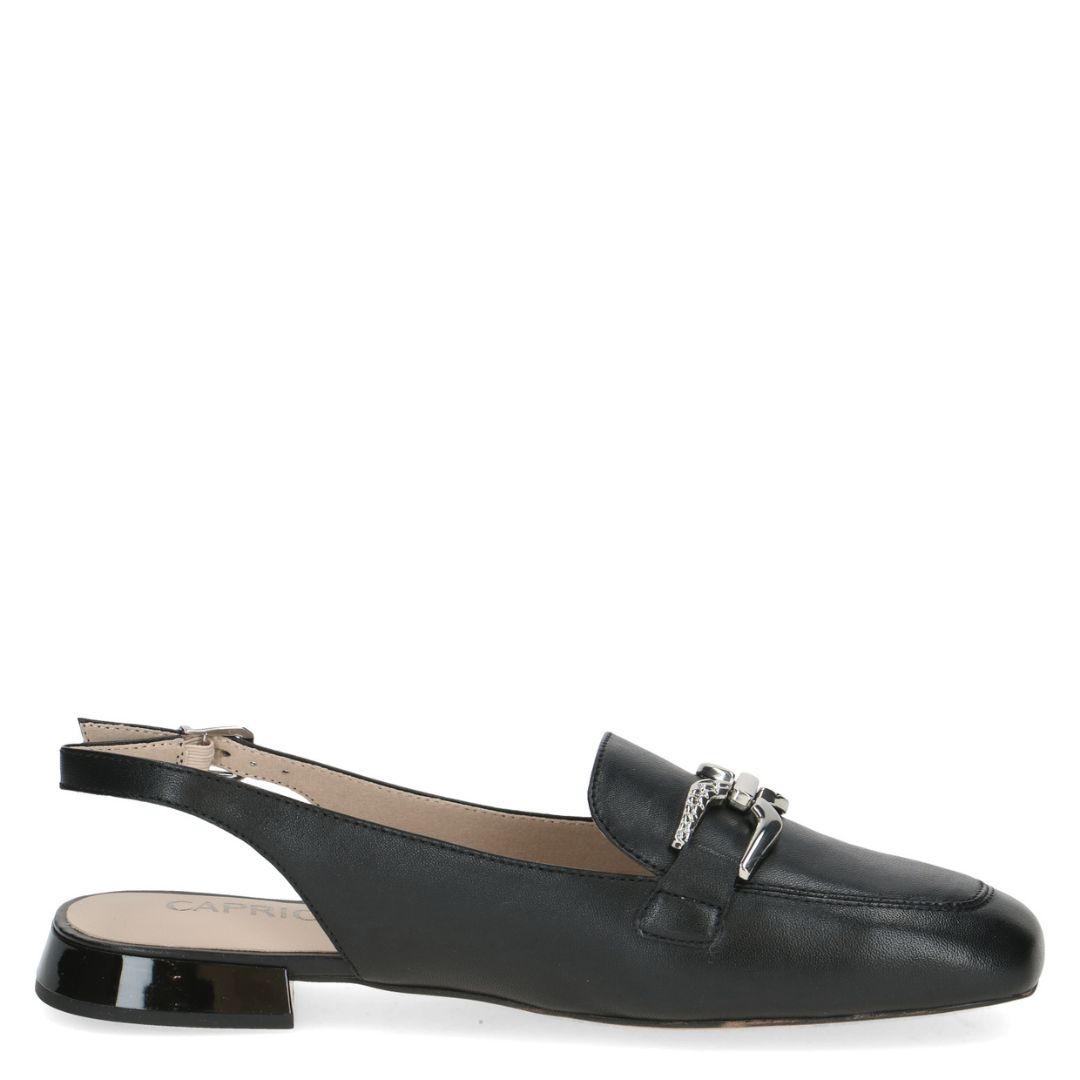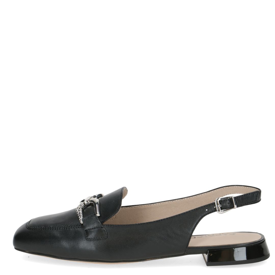 Елегантни черни сандали CAPRICE – съвършеното съчетание на стил и комфорт. Изработени от висококачествена мека кожа, те осигуряват несравнимо удобство през целия ден. Дизайнът с отворена пета и модерен метален аксесоар в предната част придава изисканост и завършеност на всяка визия.