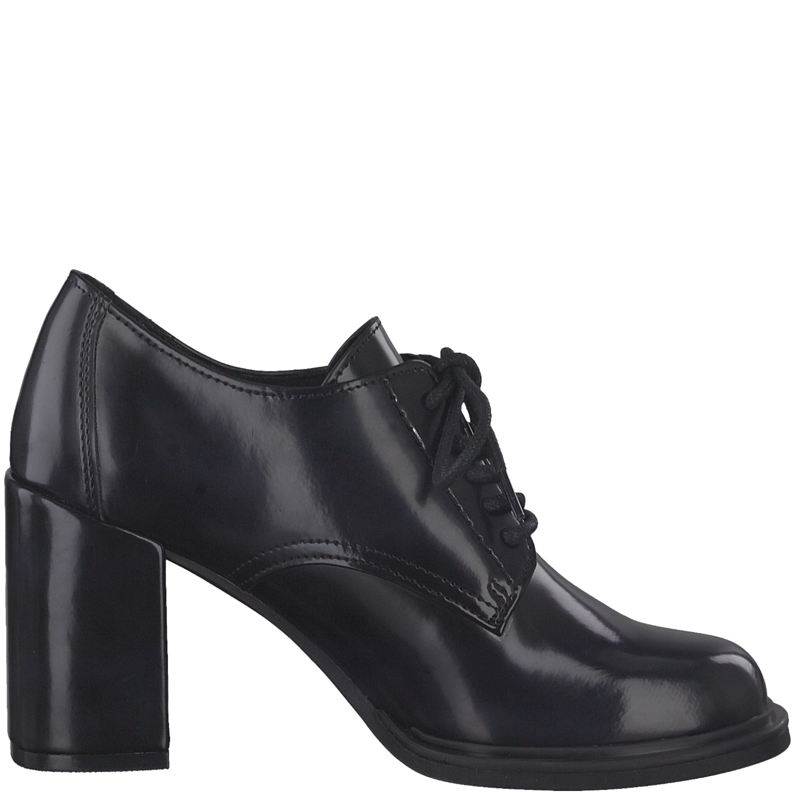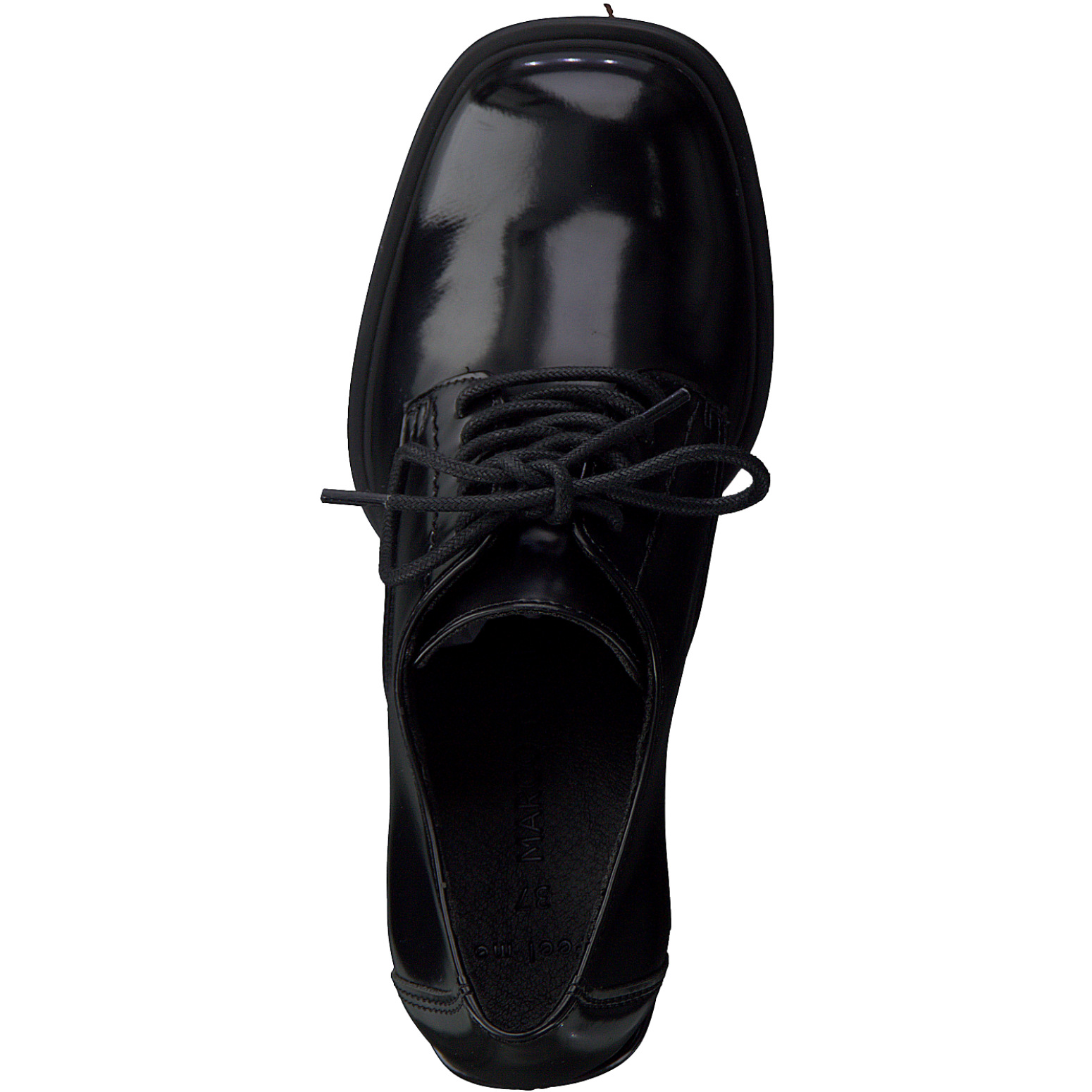 Дамски обувки от световноизвестната марка Marco Tozzi. Външната част е изработена от висококачествена еко-кожа, покрита с лак. Хастарът се състои  от топъл антибактериален текстил. Мека анатомична стелка се грижи за оптималния Ви комфорт. Обуват се лесно с помощта на връзките. Височината на подметката е 8.5 см.