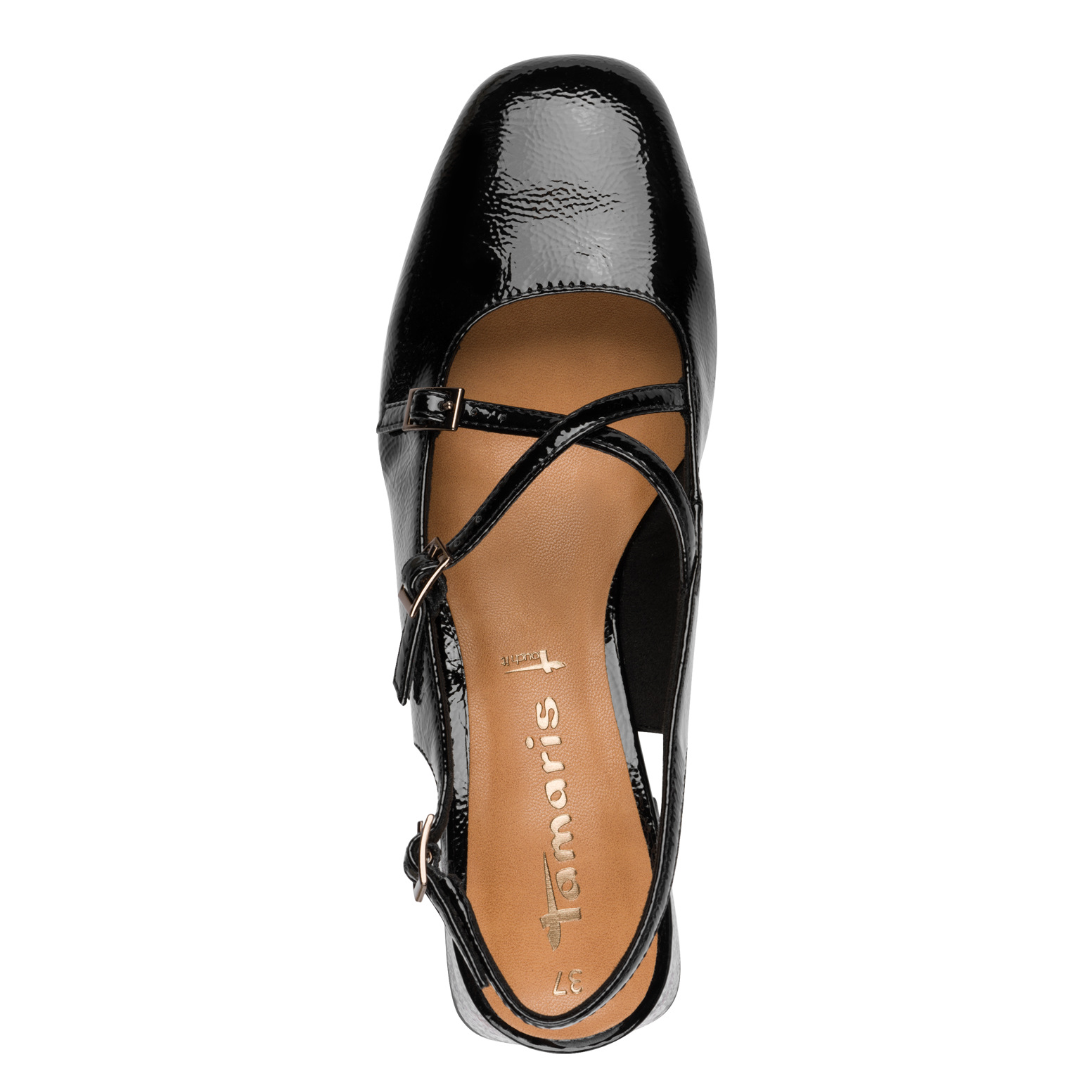 Tamaris Touch it – Черни дамски обувки с каишки и нисък ток