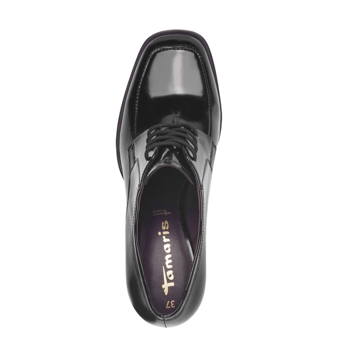 Външната част е изработена от изкустввена кожа покрита с лак. Вътрешната е комбинация от антибактериален текстил и изкуствена кожа. Технологията за изработка на стелката ви гарантира оптимален комфорт на ходилото. Височината на тока е 7.5 см.