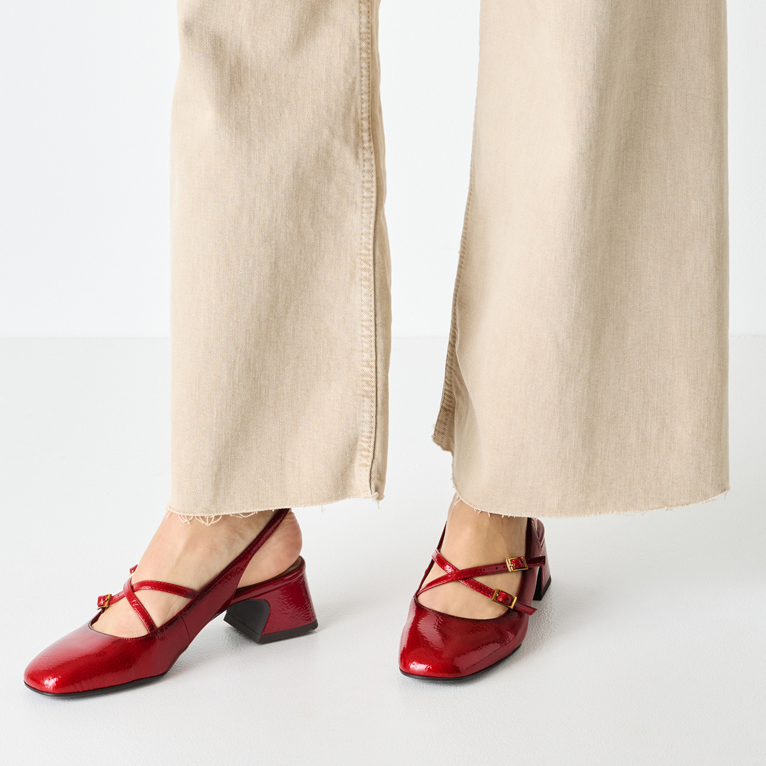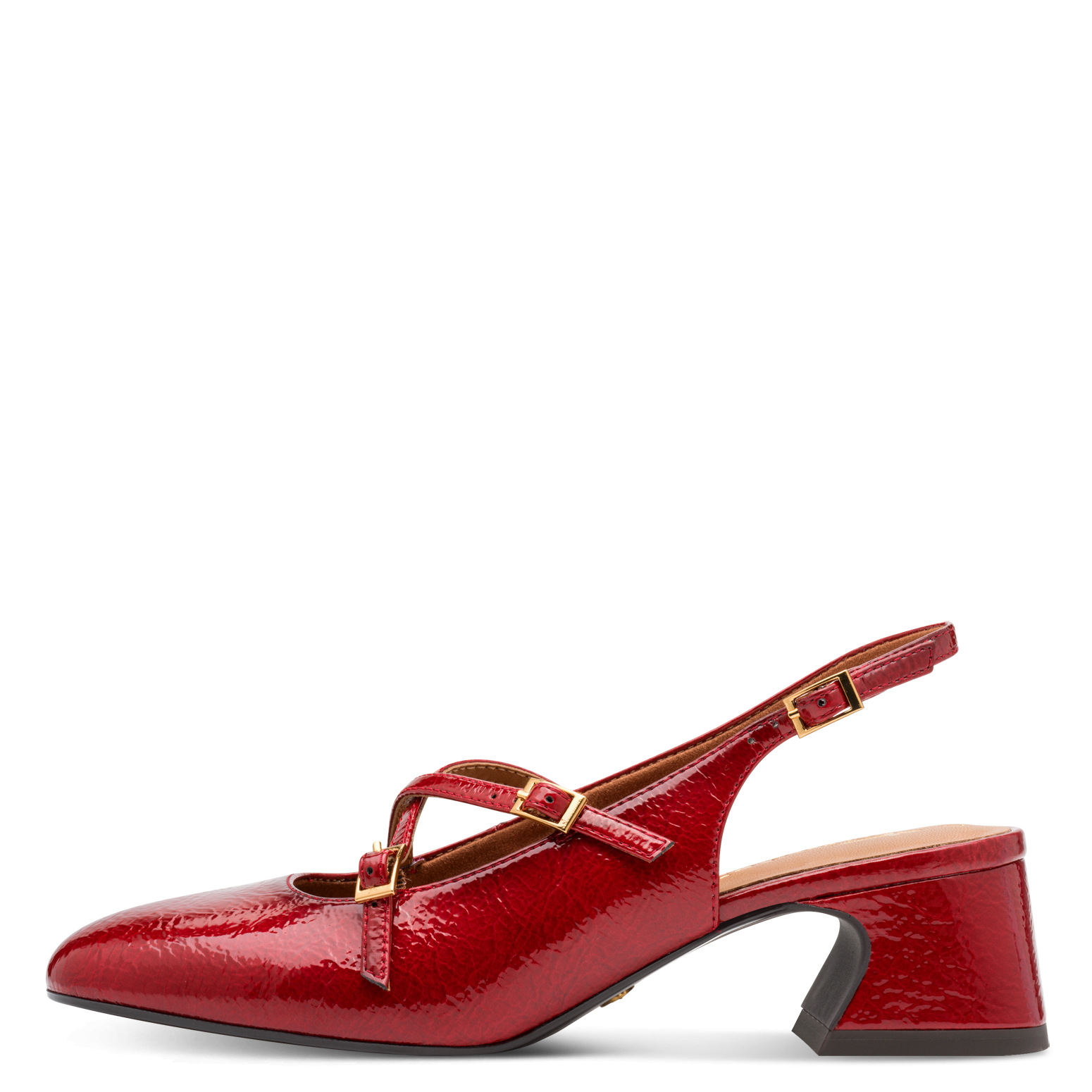 Tamaris Touch it – Червени дамски обувки с каишки и нисък ток